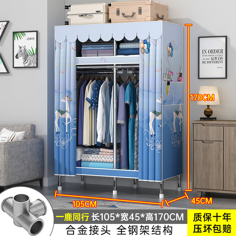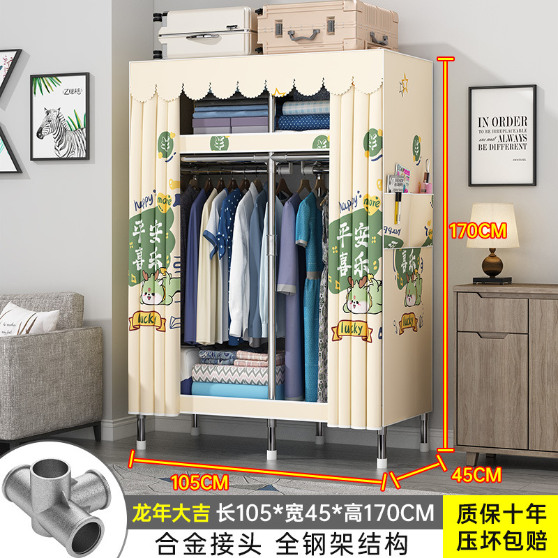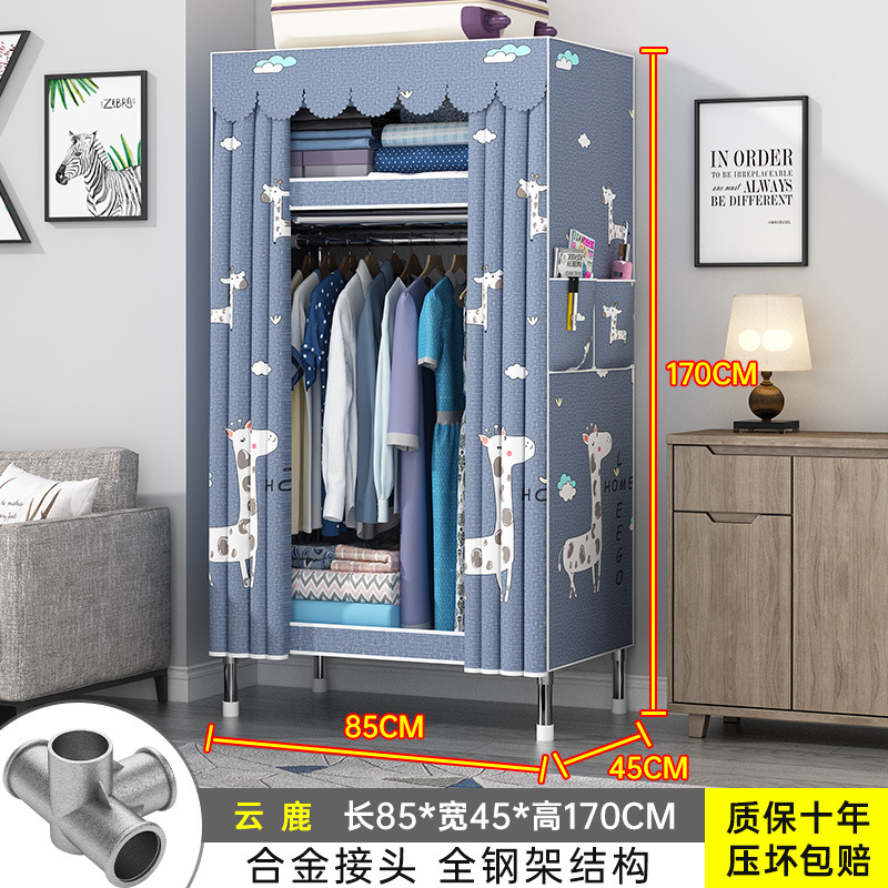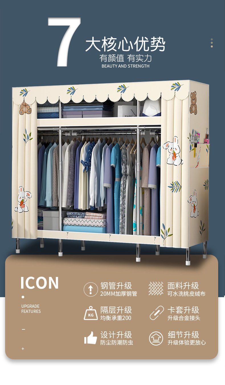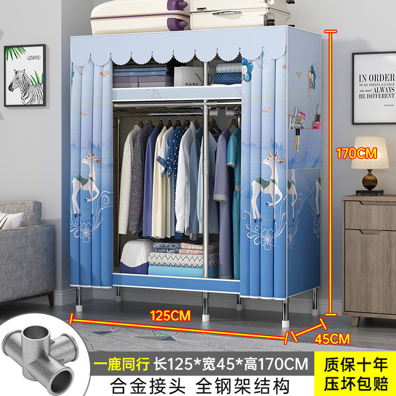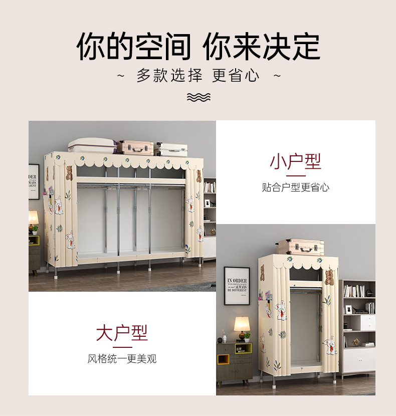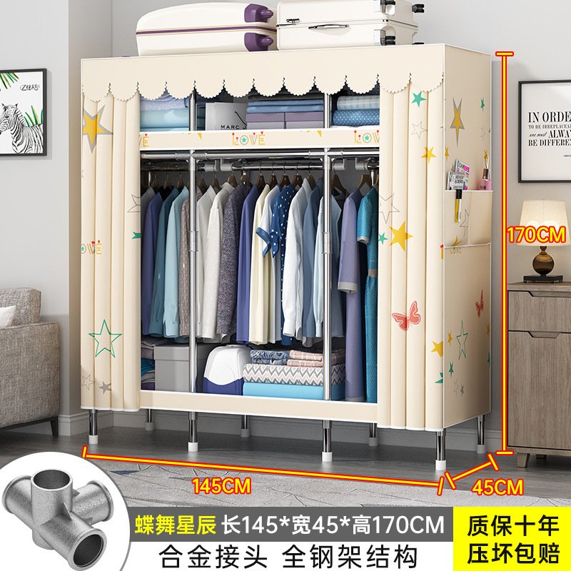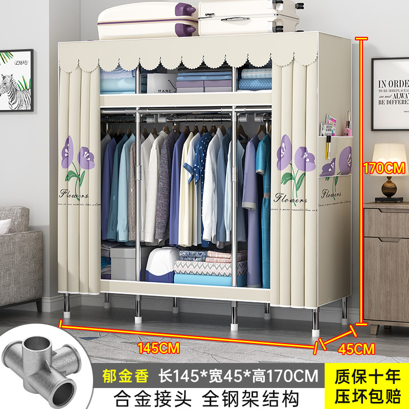 간단한 옷장 홈 조립 된 천 옷장 교수형 영역 멀티 풀 스틸 프레임 스틸 파이프 굵게 강화 된 침실 보관 옷장