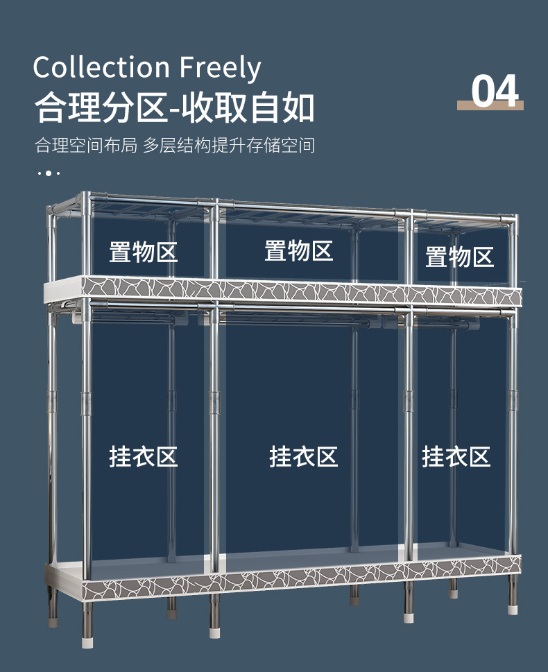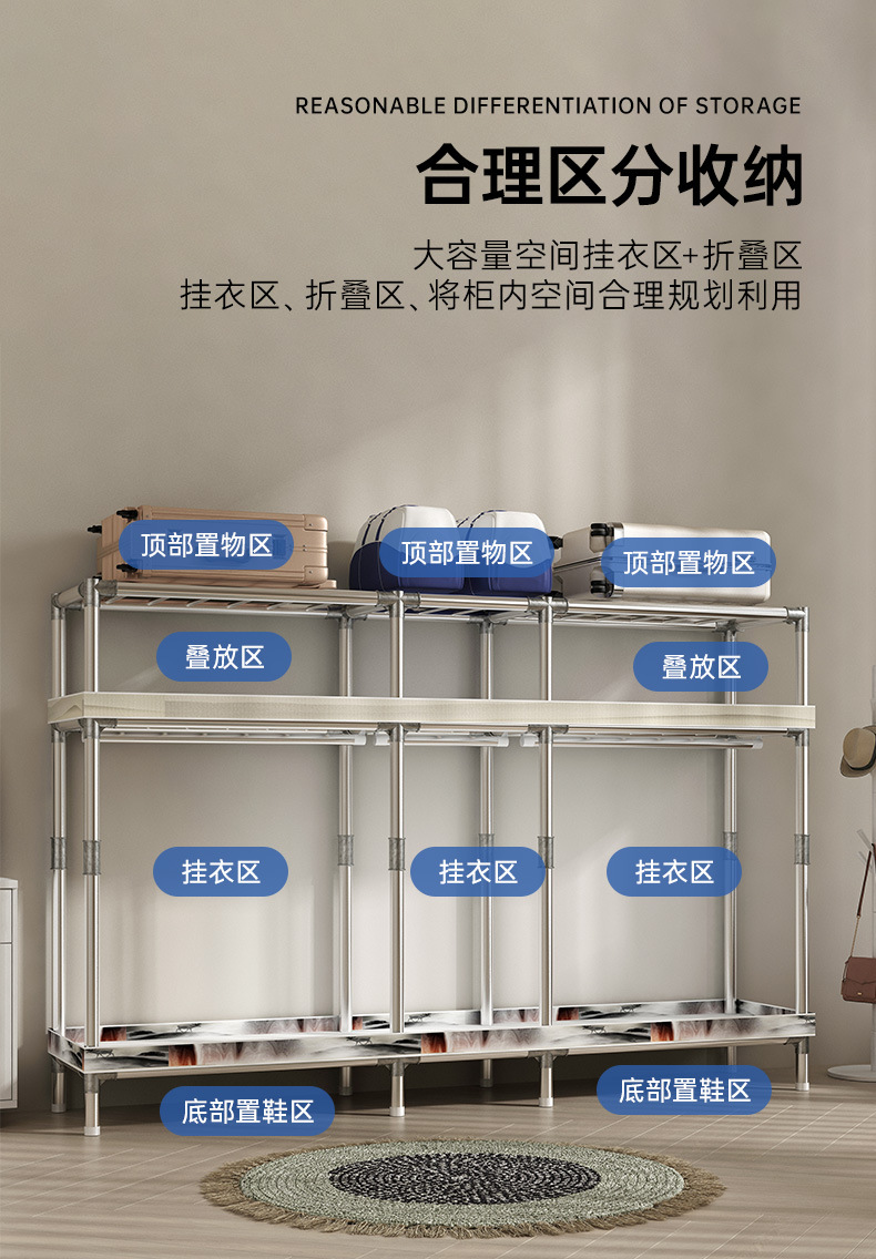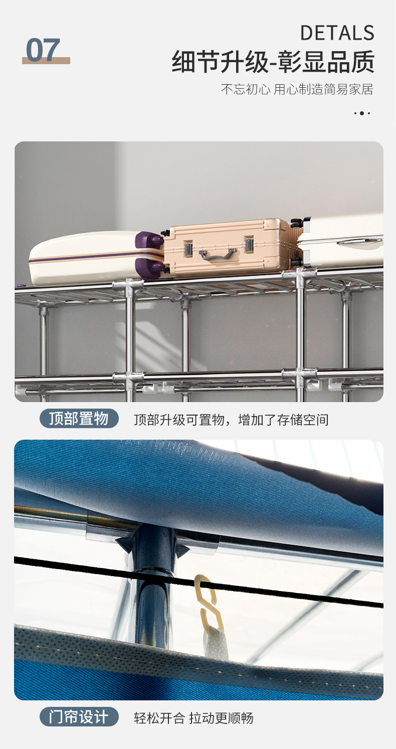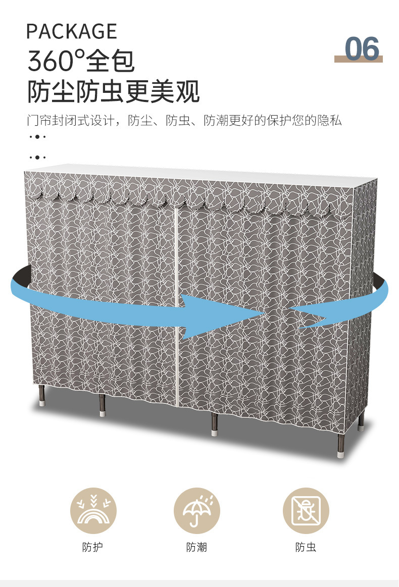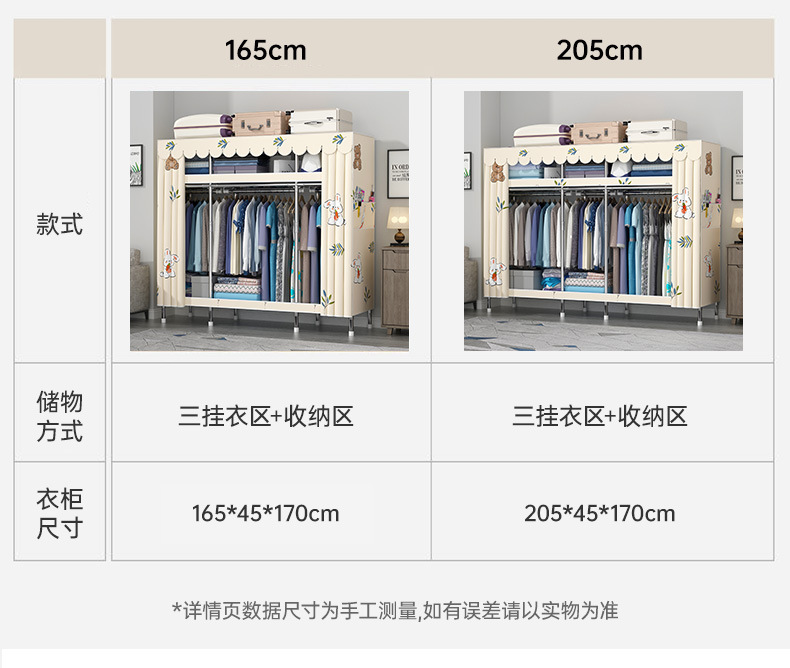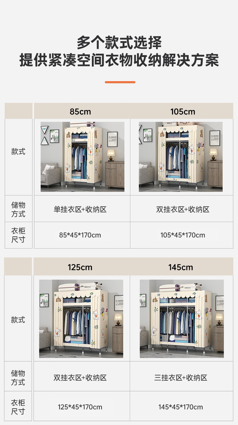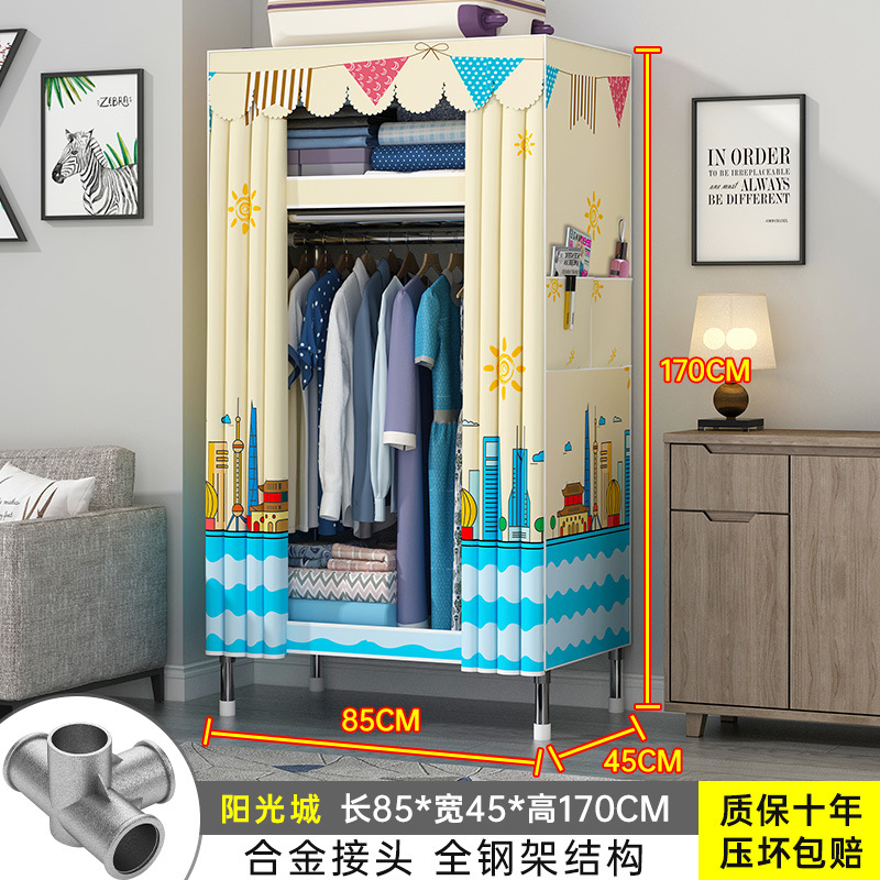 간단한 옷장 홈 조립 된 천 옷장 교수형 영역 멀티 풀 스틸 프레임 스틸 파이프 굵게 강화 된 침실 보관 옷장