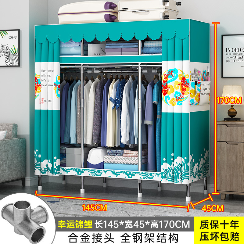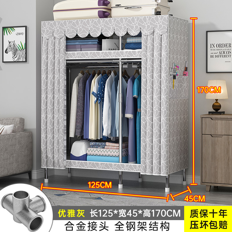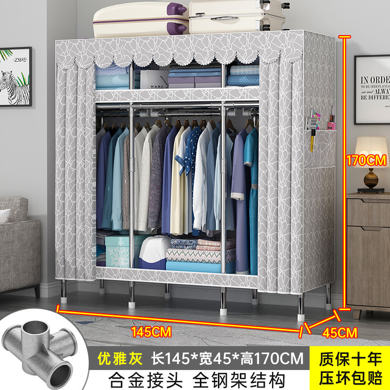 간단한 옷장 홈 조립 된 천 옷장 교수형 영역 멀티 풀 스틸 프레임 스틸 파이프 굵게 강화 된 침실 보관 옷장스토어 가기