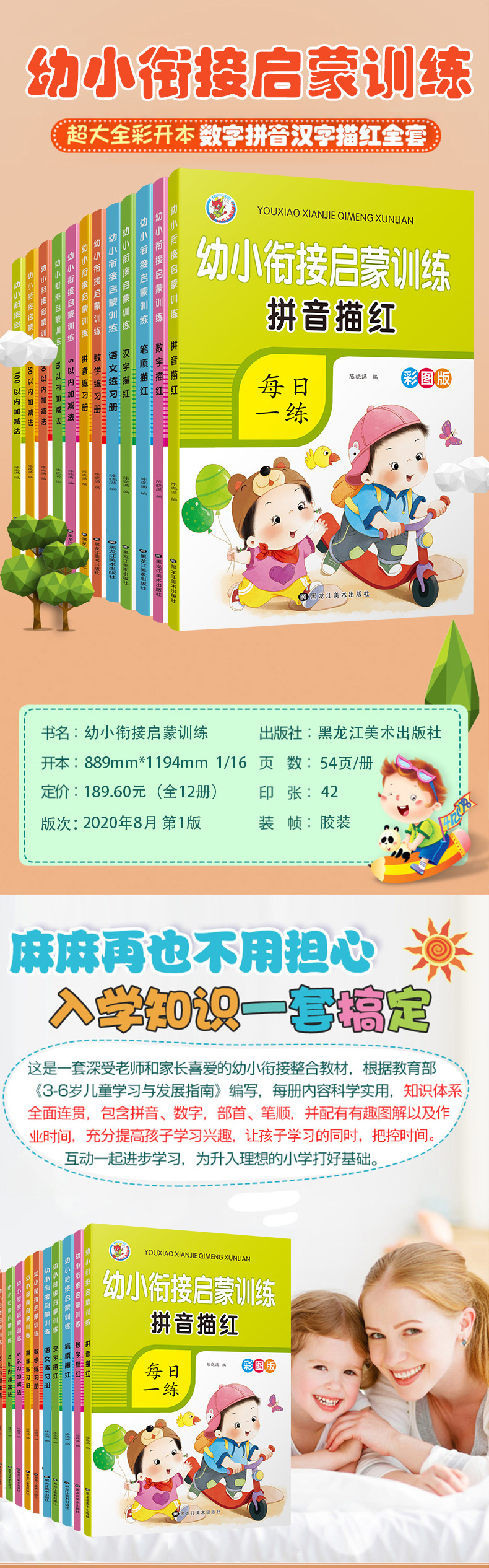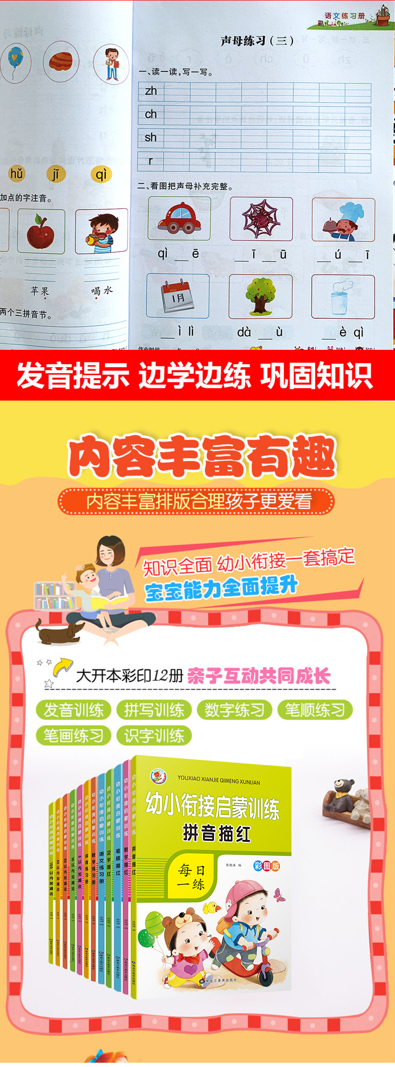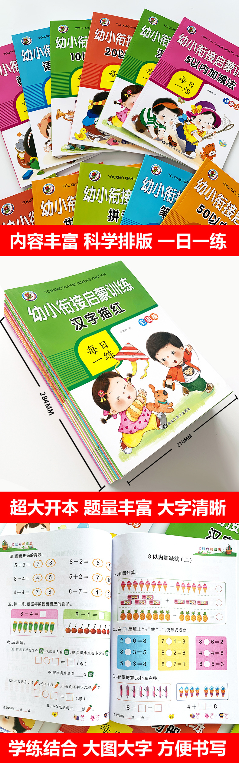 젊고 젊은 응집력 계발 훈련 중국 병음 수학 중국어 추가 및 뺄셈 운동 책의 일상 연습의 색지도 버전