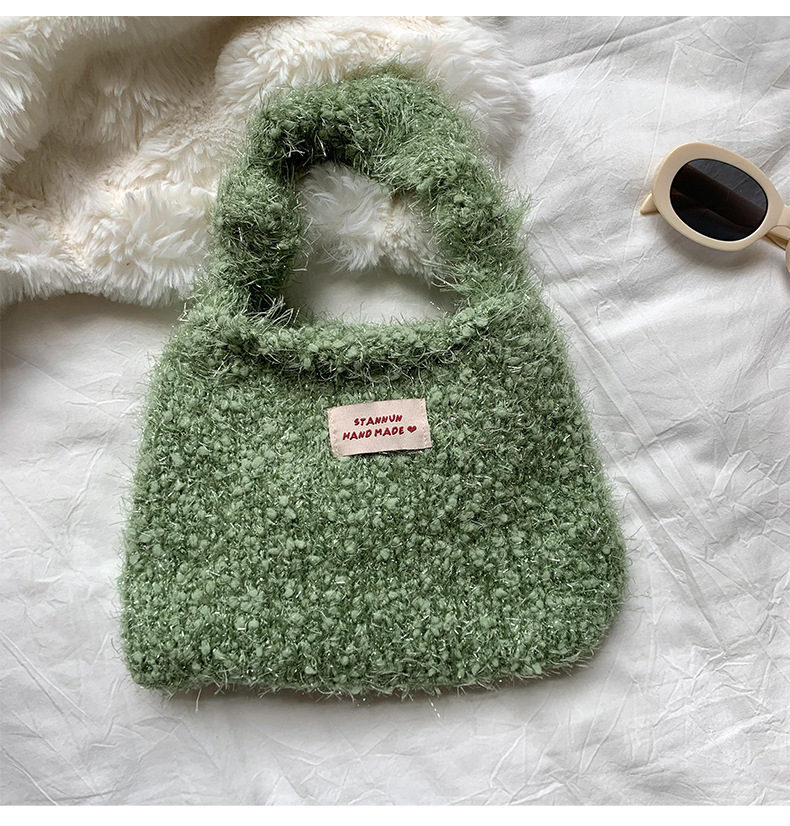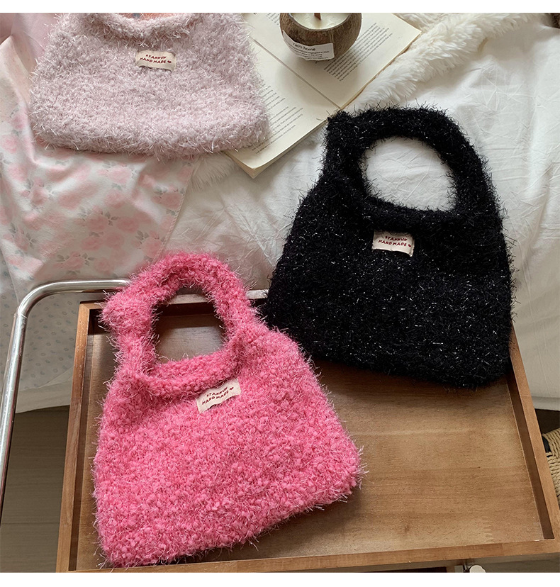 니트 핸드백 2025 가을 겨울 새로운 단색 다용도 부드럽고 왁시한 느낌의 플러시 가방 숄더백 핸드백스토어 가기