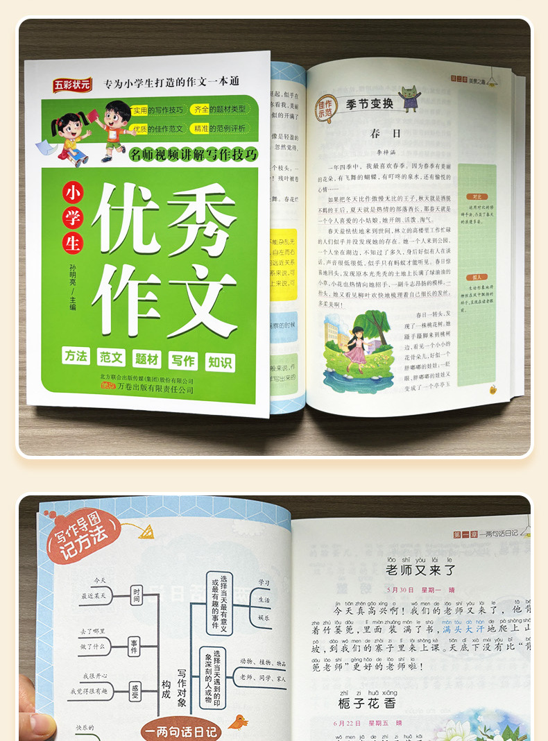 학생들의 작곡 완전한 책 비디오는 글쓰기 기술을 설명합니다 한 단어 일기 시작 좋은 단어 좋은 문장 좋은 문장 책스토어 가기