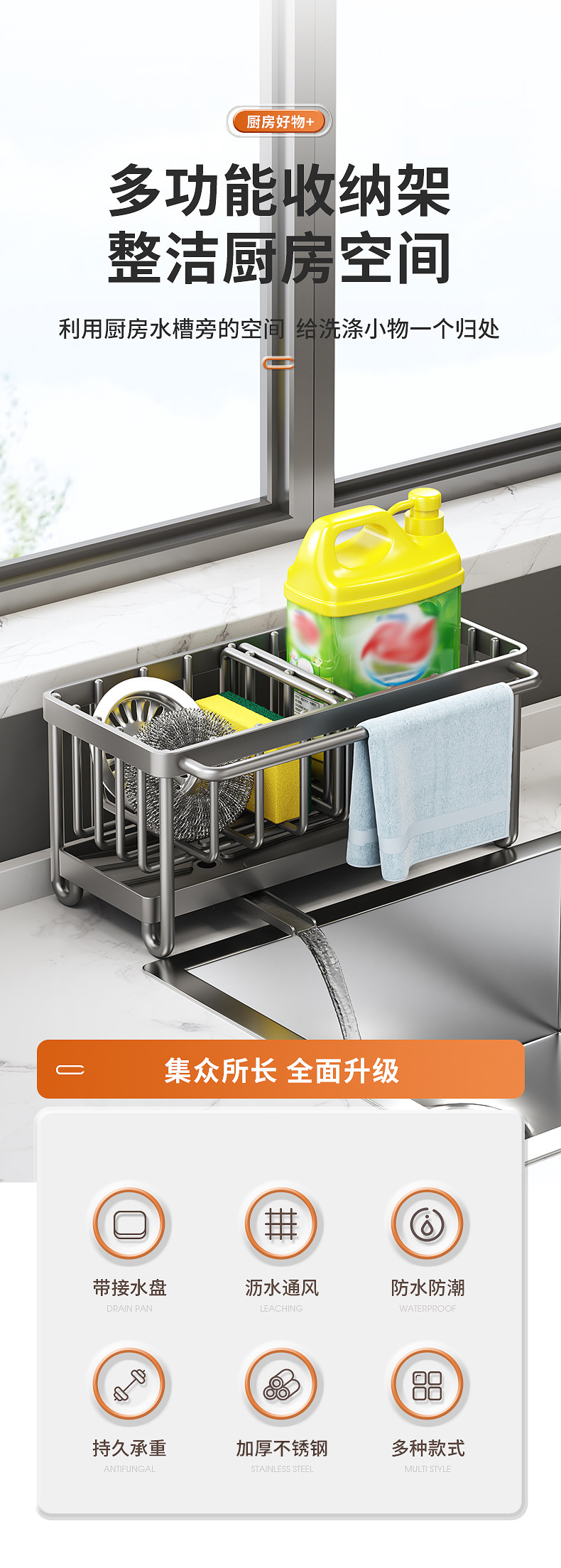 업그레이드 된 주방 싱크 스토리지 랙 랙 랙 스토리지 드레인 랙 수도꼭지 싱크 세척 스폰지 스틸 와이어 볼 랙