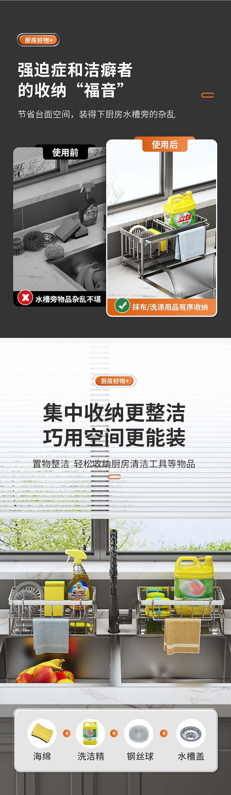 업그레이드 된 주방 싱크 스토리지 랙 랙 랙 스토리지 드레인 랙 수도꼭지 싱크 세척 스폰지 스틸 와이어 볼 랙스토어 가기