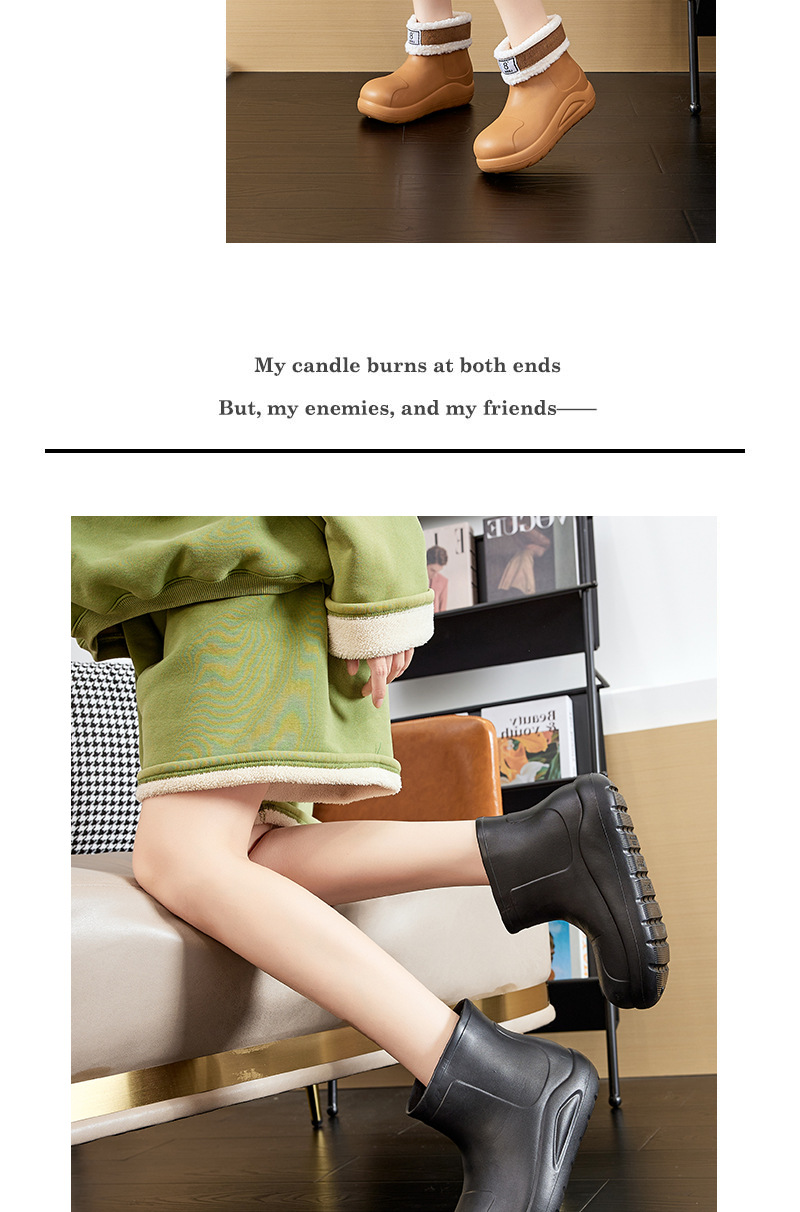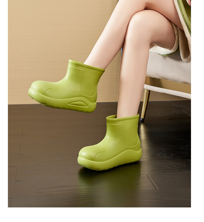 한국 스타일 큰 머리 비 신발 여성 유행 아웃웨어 짧은 튜브 빛 방수 장화 새로운 비 슬립 두꺼운 밑바닥 성인 여성 부츠스토어 가기