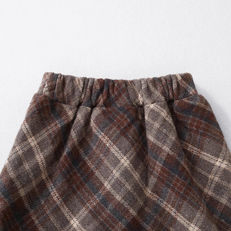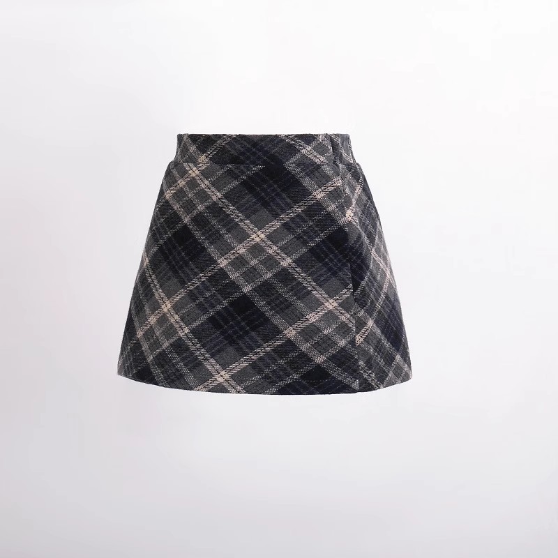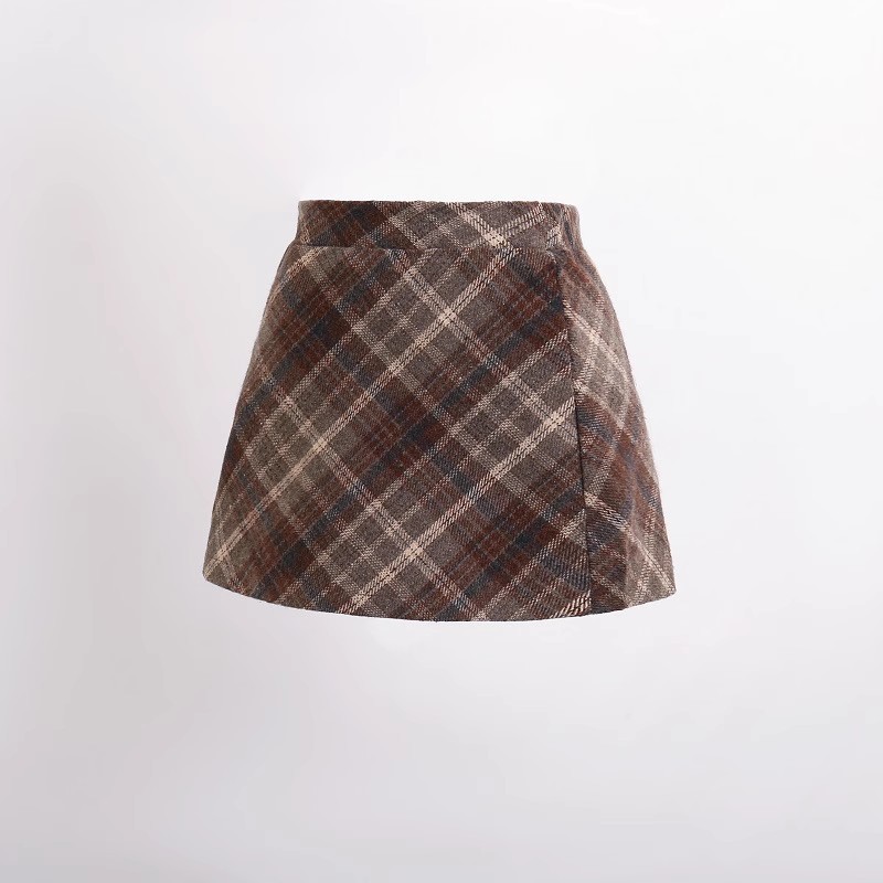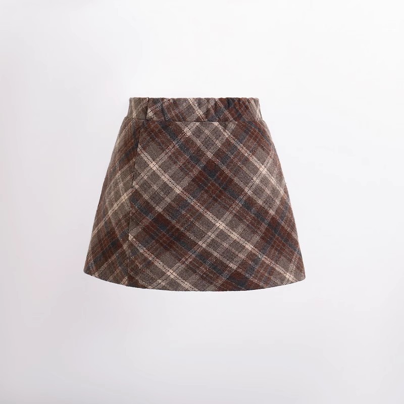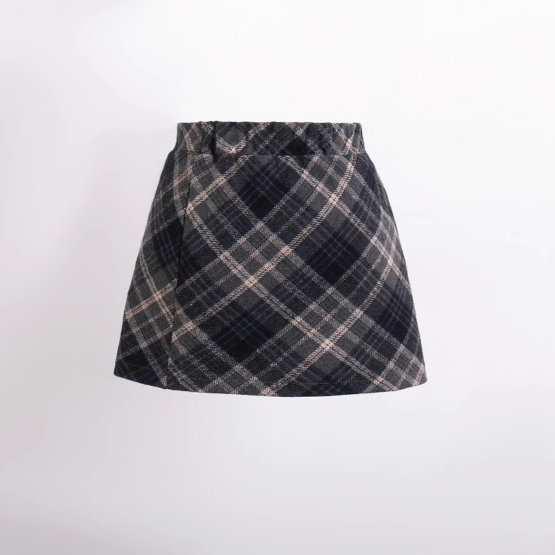 2025 가을 겨울 여아용 모직 체크무늬 스커트, 힙을 감싸는 스커트, 한국 스타일 아동용 패셔너블하고 날씬해 보이는 하이웨이스트 숏 스커트스토어 가기