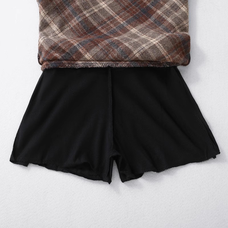 2025 가을 겨울 여아용 모직 체크무늬 스커트, 힙을 감싸는 스커트, 한국 스타일 아동용 패셔너블하고 날씬해 보이는 하이웨이스트 숏 스커트