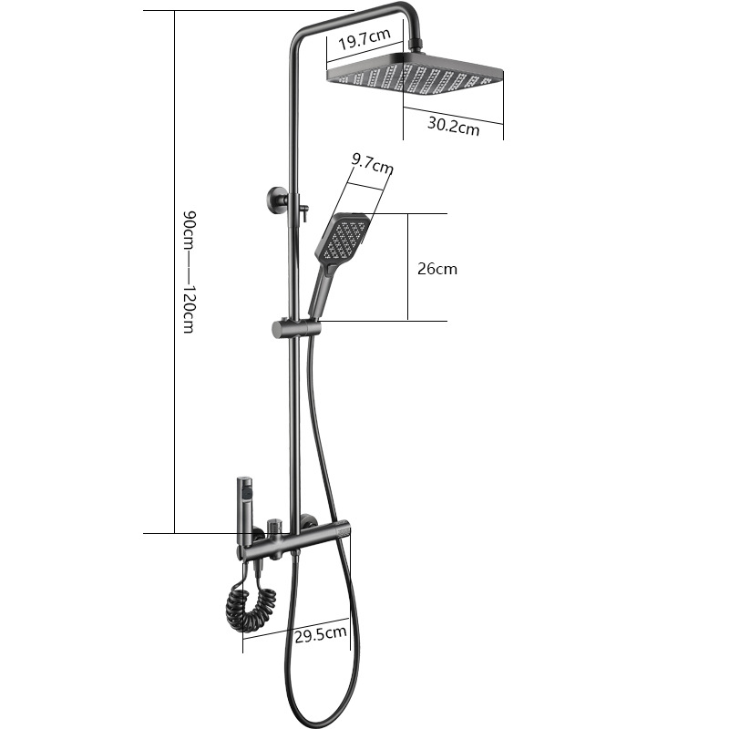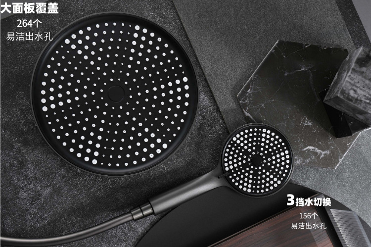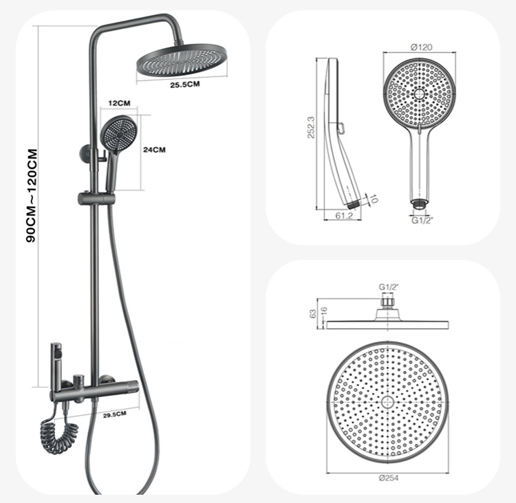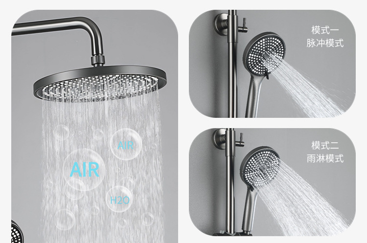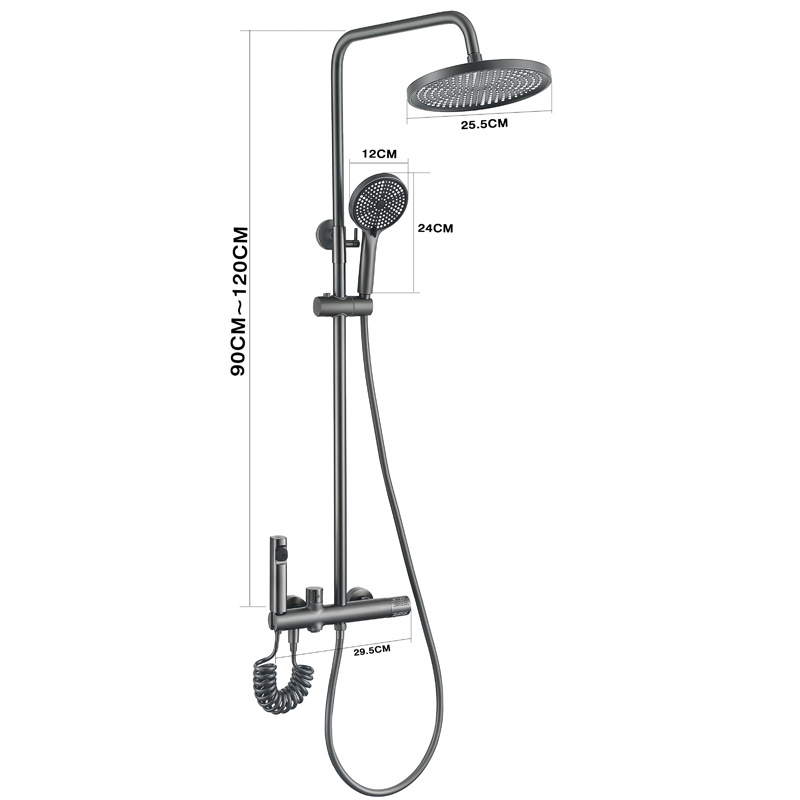 원제조사 건메탈 그레이 이중 휠 플라워 디자인 순동 샤워기 세트, 벽걸이형 4기능 샤워기