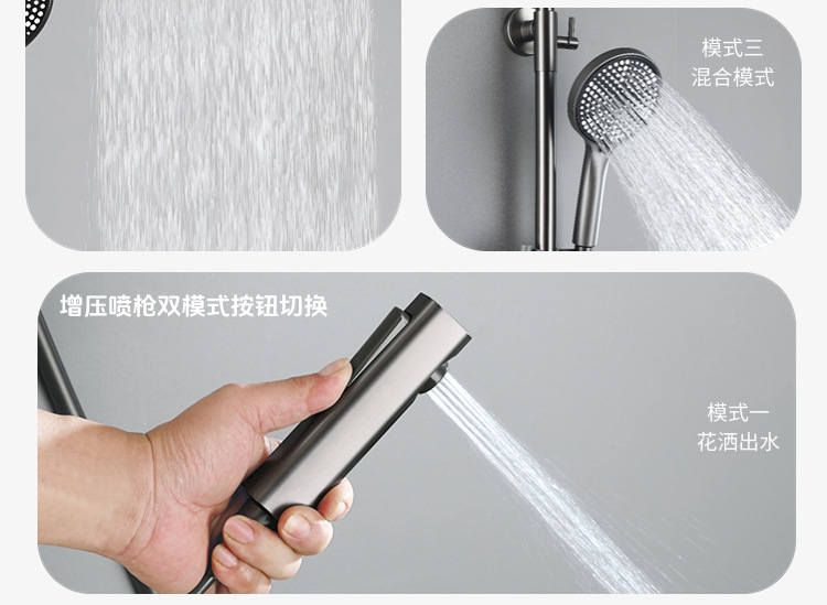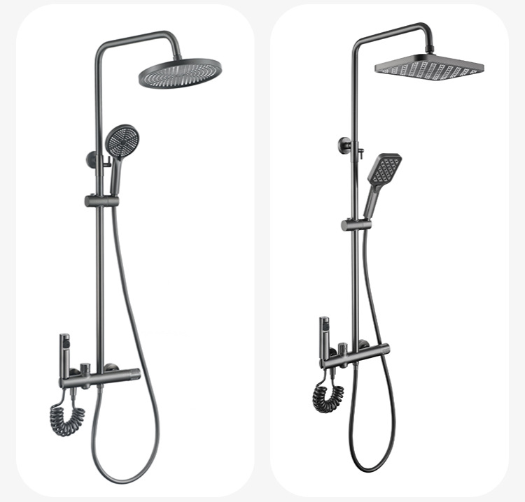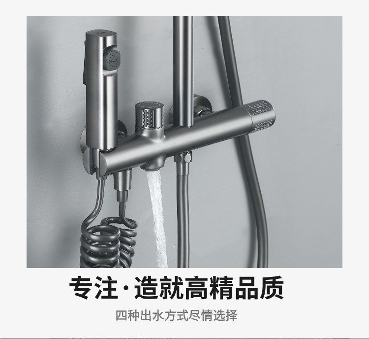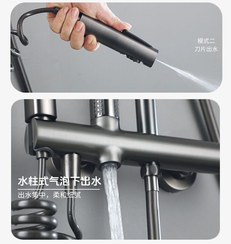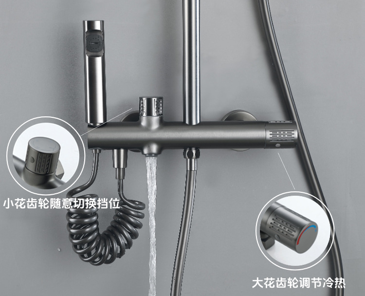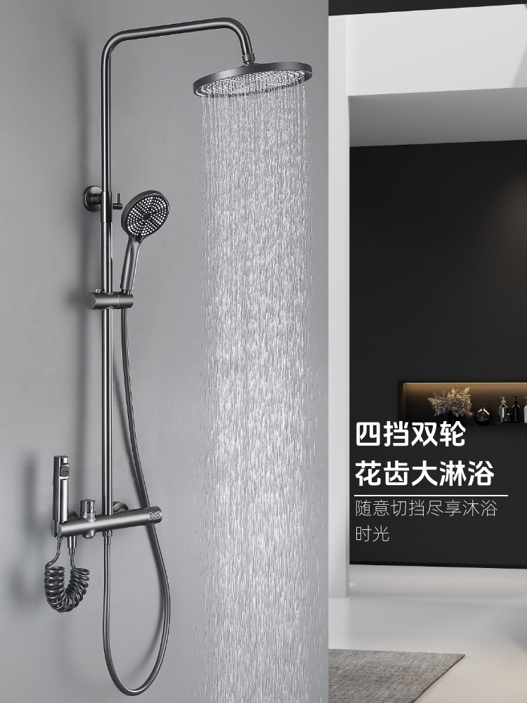 원제조사 건메탈 그레이 이중 휠 플라워 디자인 순동 샤워기 세트, 벽걸이형 4기능 샤워기스토어 가기