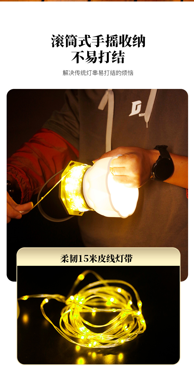 야외 Xinghe 캠핑 롤 램프 캠핑 분위기 램프 방수 휴대용 저장 끈 램프 캠프 조명 텐트 램프