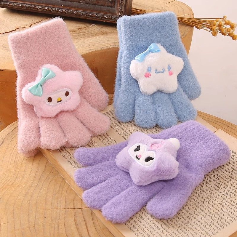 어린이, 소년, 소녀를 위한 귀여운 만화 전체 손가락 장갑, 겨울철 보온 및 동결 방지, 쿠로미 보온 및 벨벳 손가락 장갑