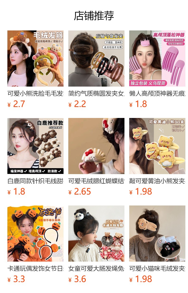 봉제 푸딩 베어 잡아 클립 여성용 가을과 겨울 원활한 한 단어 덕빌 클립 헤드 사이드 뱅 헤어핀 프론트 부러진 헤어핀스토어 가기