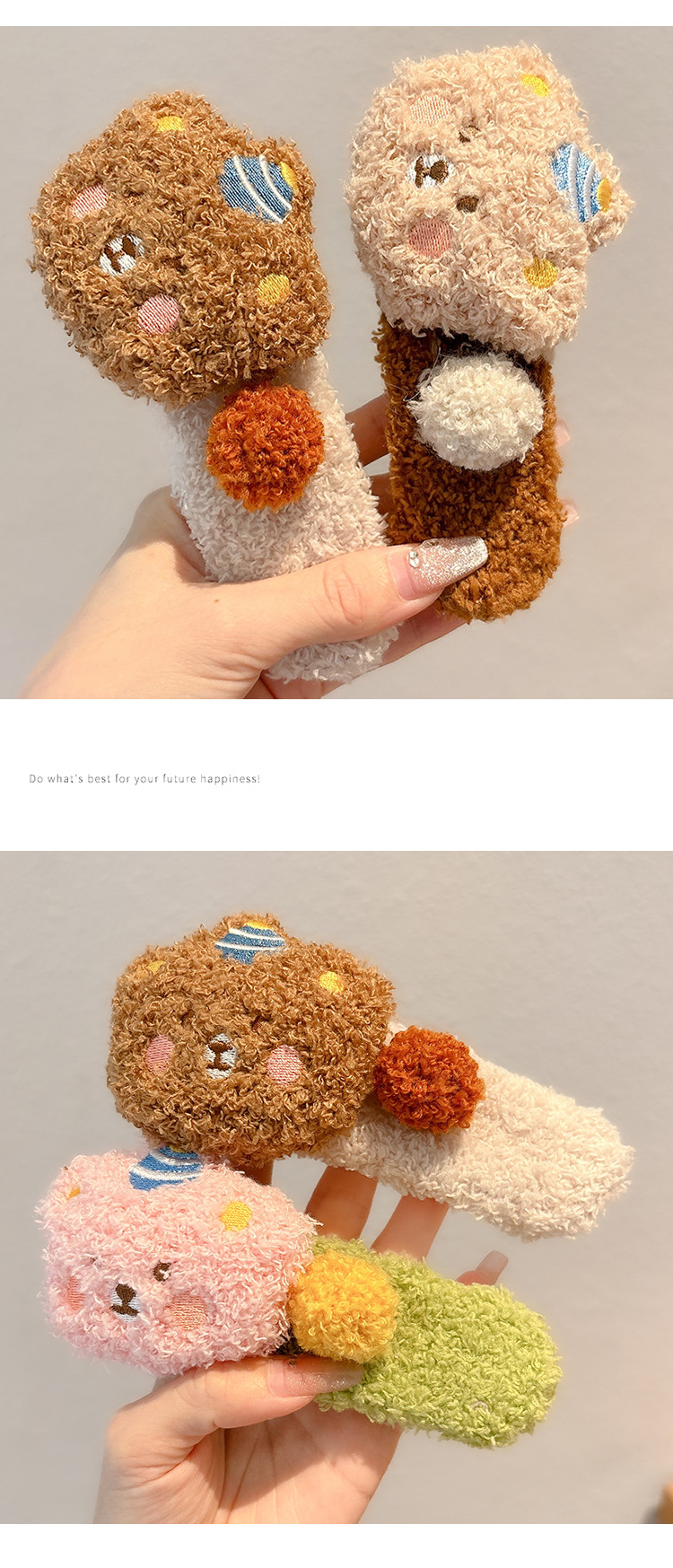 봉제 푸딩 베어 잡아 클립 여성용 가을과 겨울 원활한 한 단어 덕빌 클립 헤드 사이드 뱅 헤어핀 프론트 부러진 헤어핀
