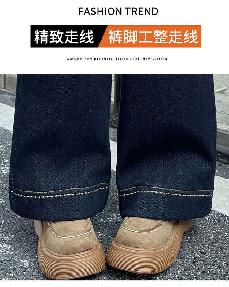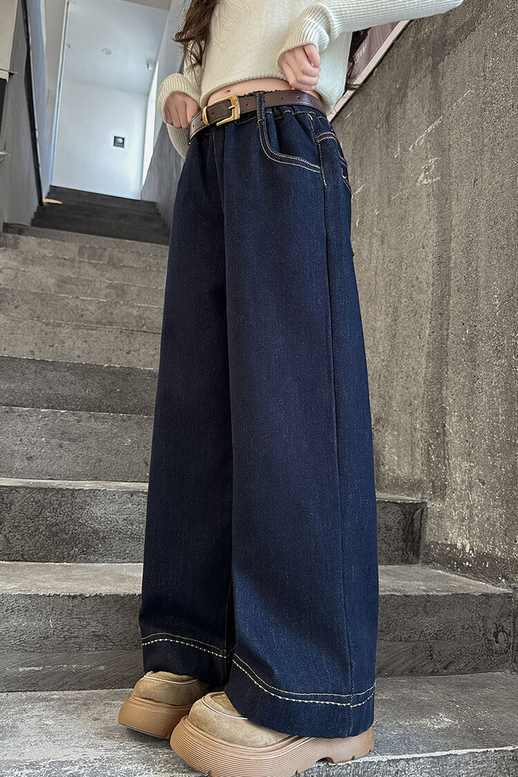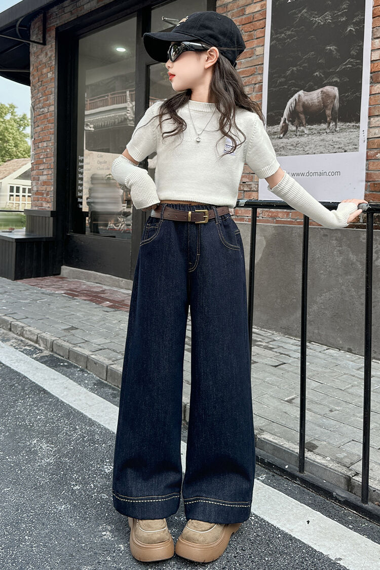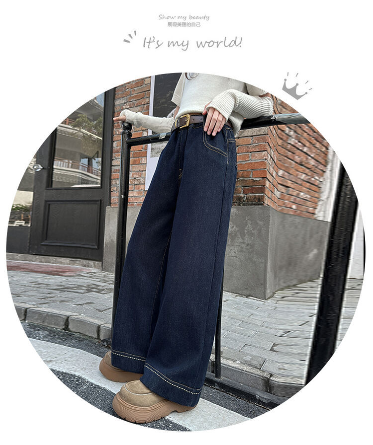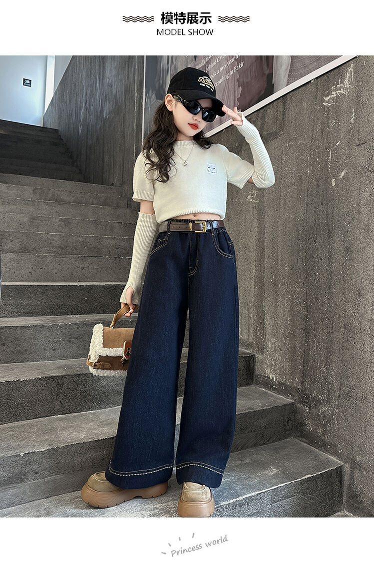 소녀 기모 청바지 가을 겨울 2024 새로운 어린이 캐주얼 원피스 벨벳 와이드 레그 바지 대형 어린이 서양식 바지스토어 가기