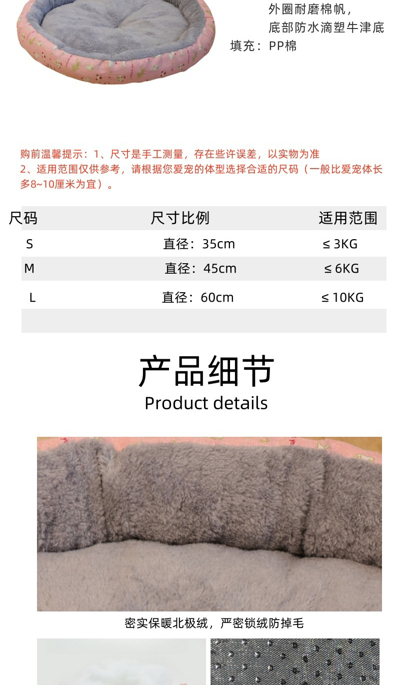 温馨提醒:此链接为最小尺寸,直径35厘米,适合身长20厘米左右,体重5斤以下的小型宠物。链接里金毛宝宝模特图所使用的是直径45厘米的,可以前往另外链接购买。