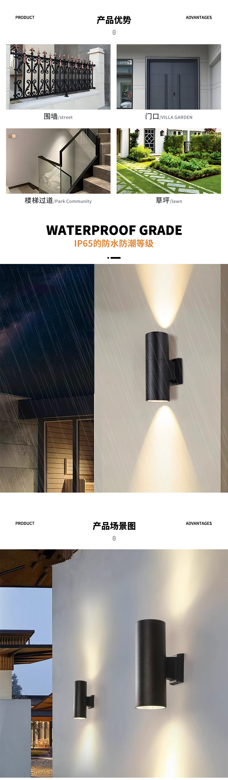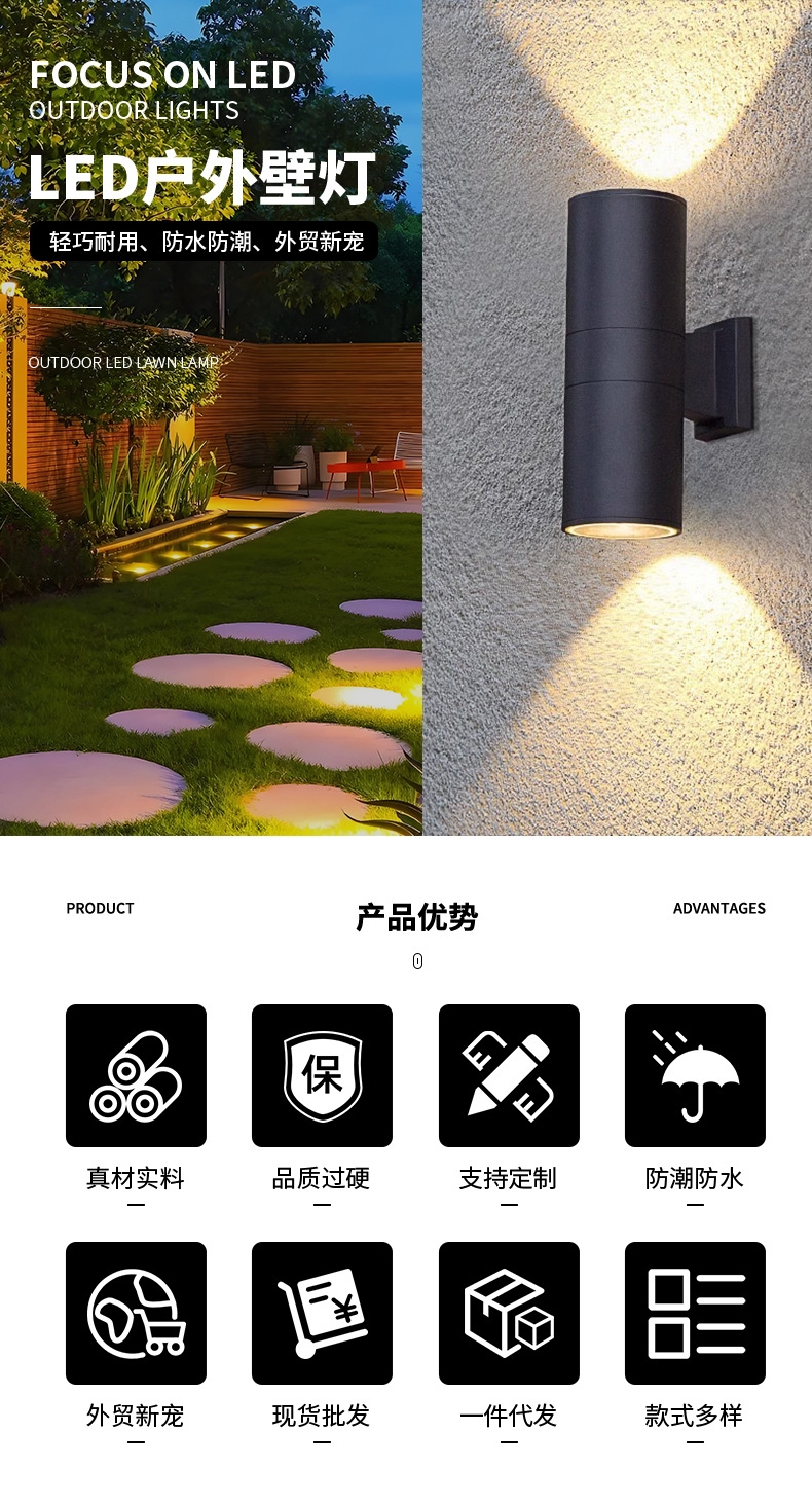 야외 벽 빛 방수 LED 발코니 동쪽 업그레이드 슈퍼 밝은 벽 야외 파티오 테라스 벽 빛