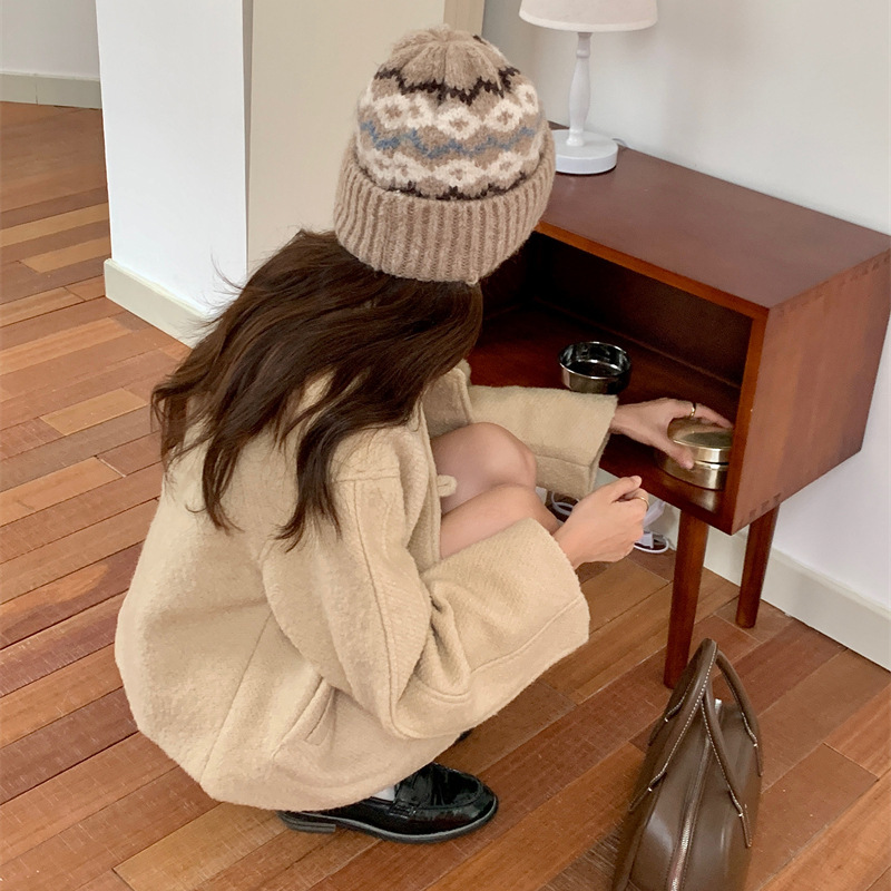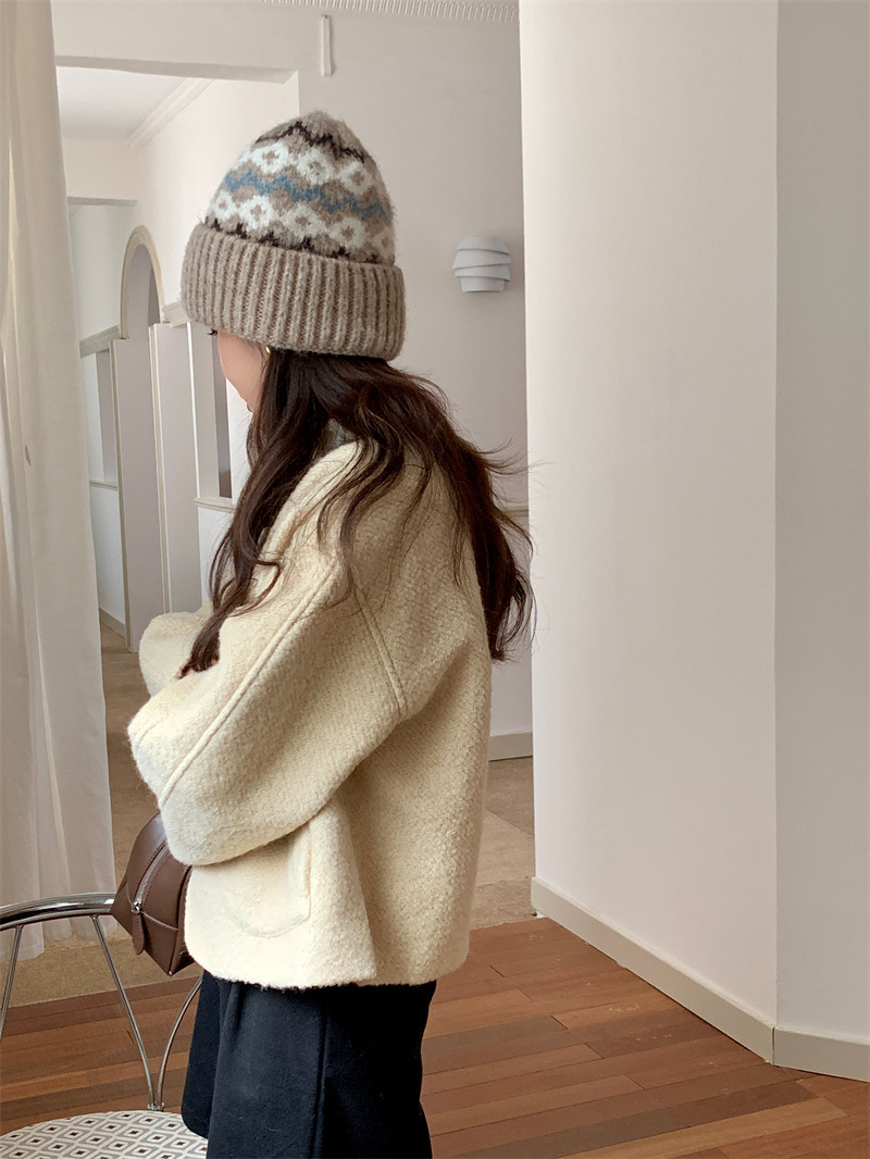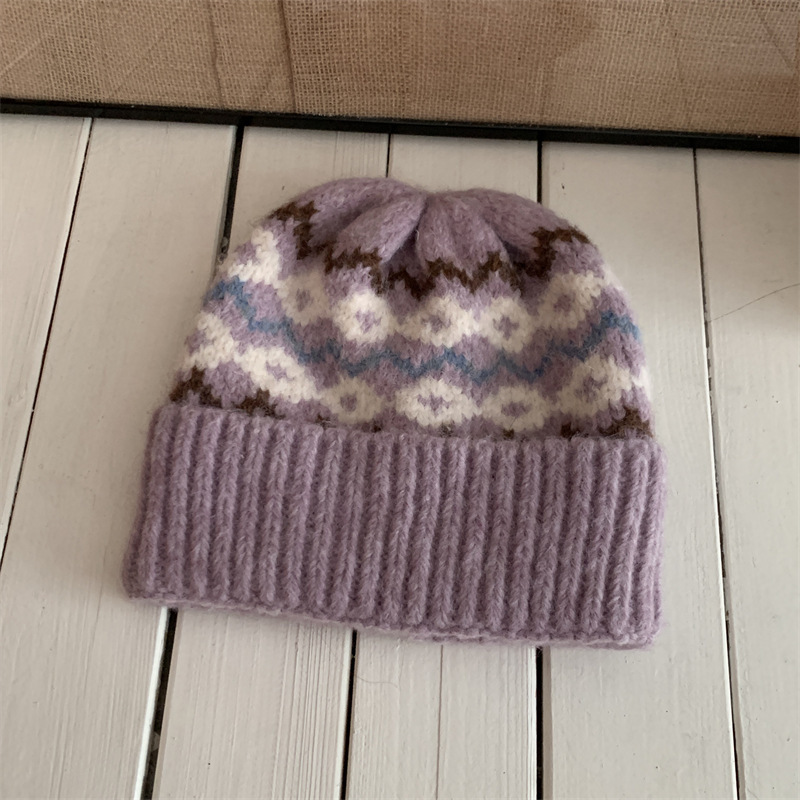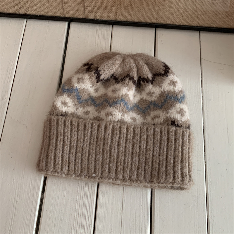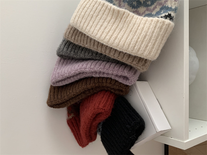 페어아일랜드 분위기 작은 빨간 모자 마름모꼴 따뜻한 귀 보호 크리스마스 모자 한국 Ins 주름 니트 양모 모자스토어 가기