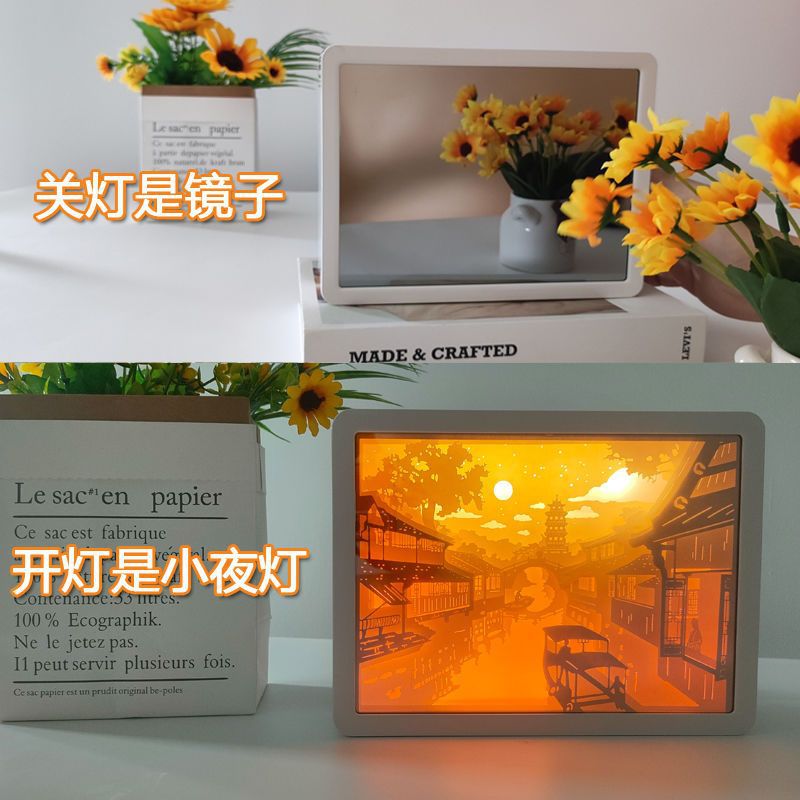 빛을 끄는 것은 빛과 그림자 종이 조각 램프 의미있는 생일 선물 여자 여자 친구 메이크업 거울 작은 꿈 도메인