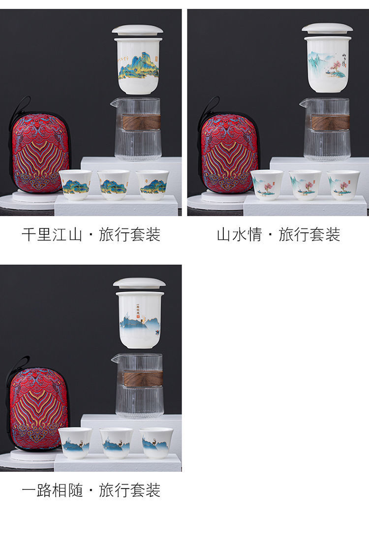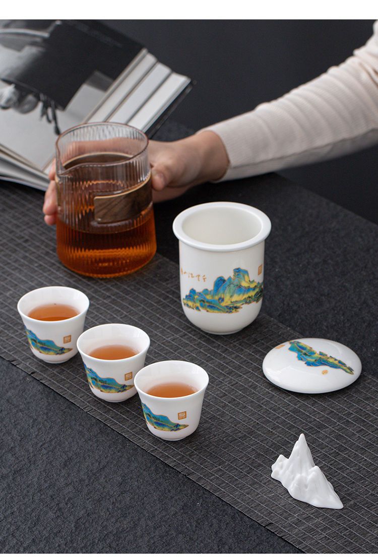 전당포 여행 차 세트 가정용 차 물 분리 컵 일본식 1 포트 3 컵 휴대용 세라믹 유리 익스프레스 컵 드림 도메인