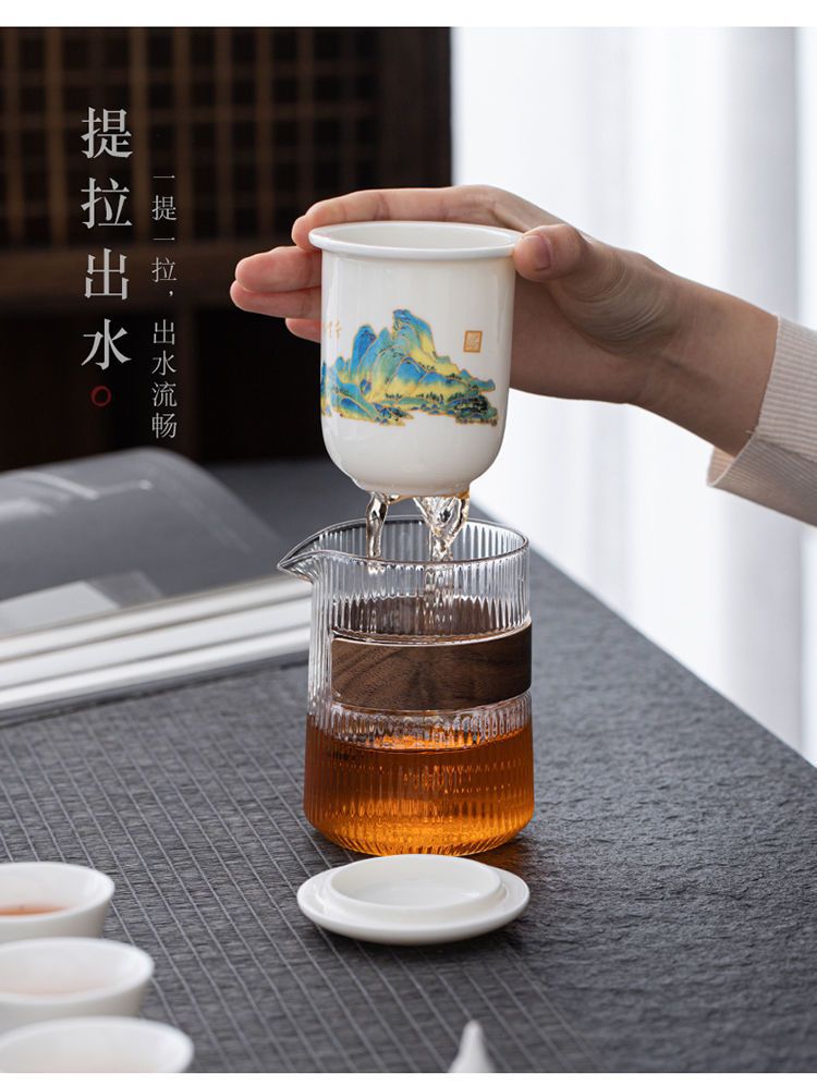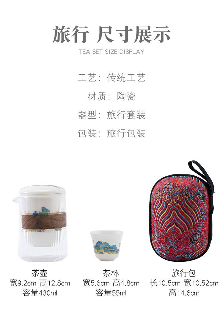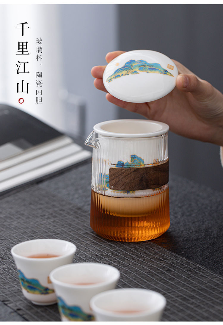 전당포 여행 차 세트 가정용 차 물 분리 컵 일본식 1 포트 3 컵 휴대용 세라믹 유리 익스프레스 컵 드림 도메인스토어 가기