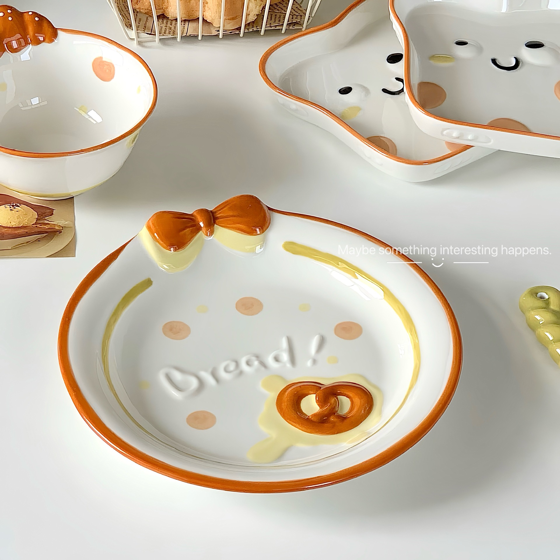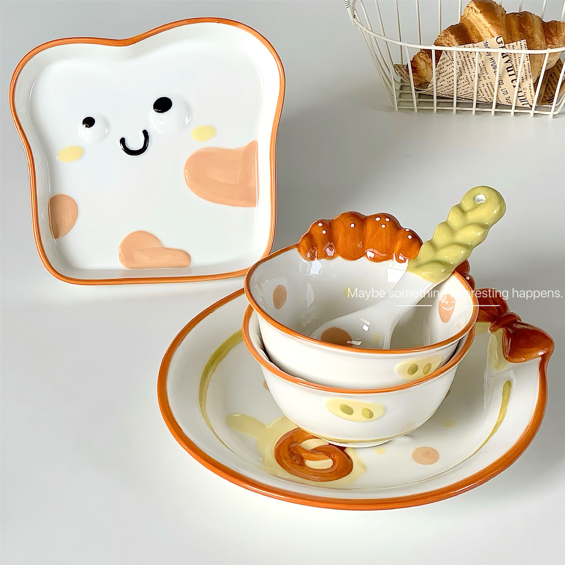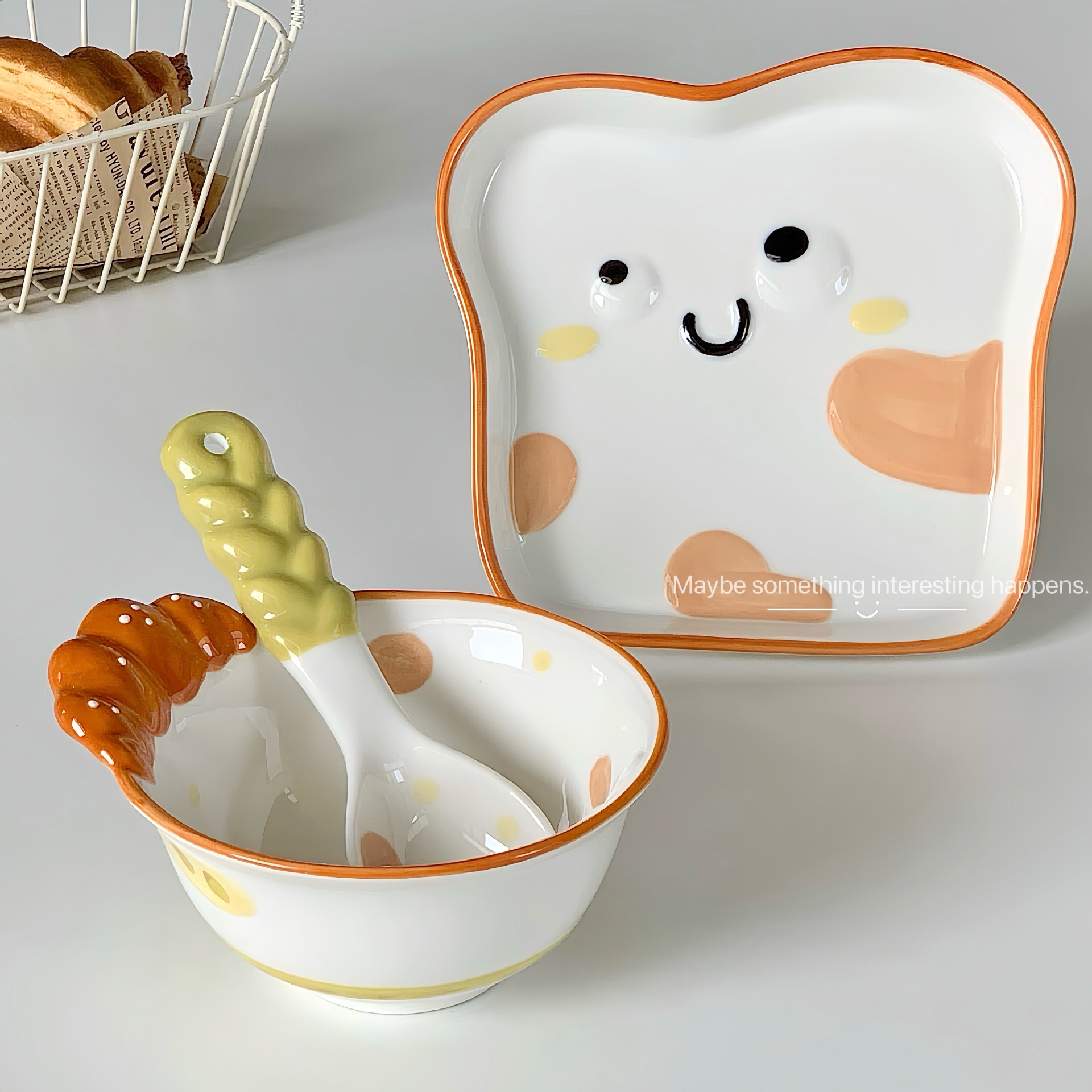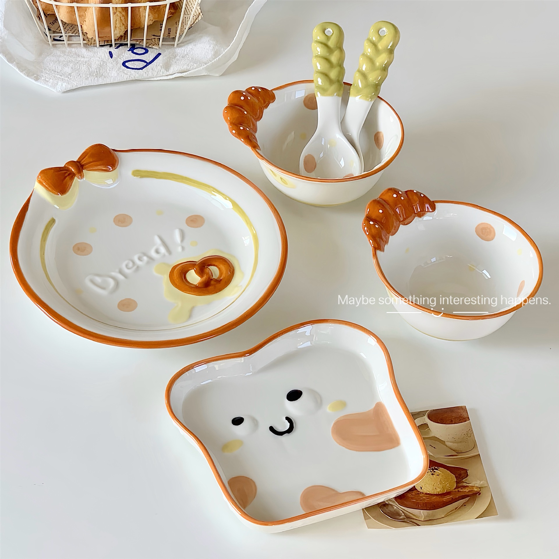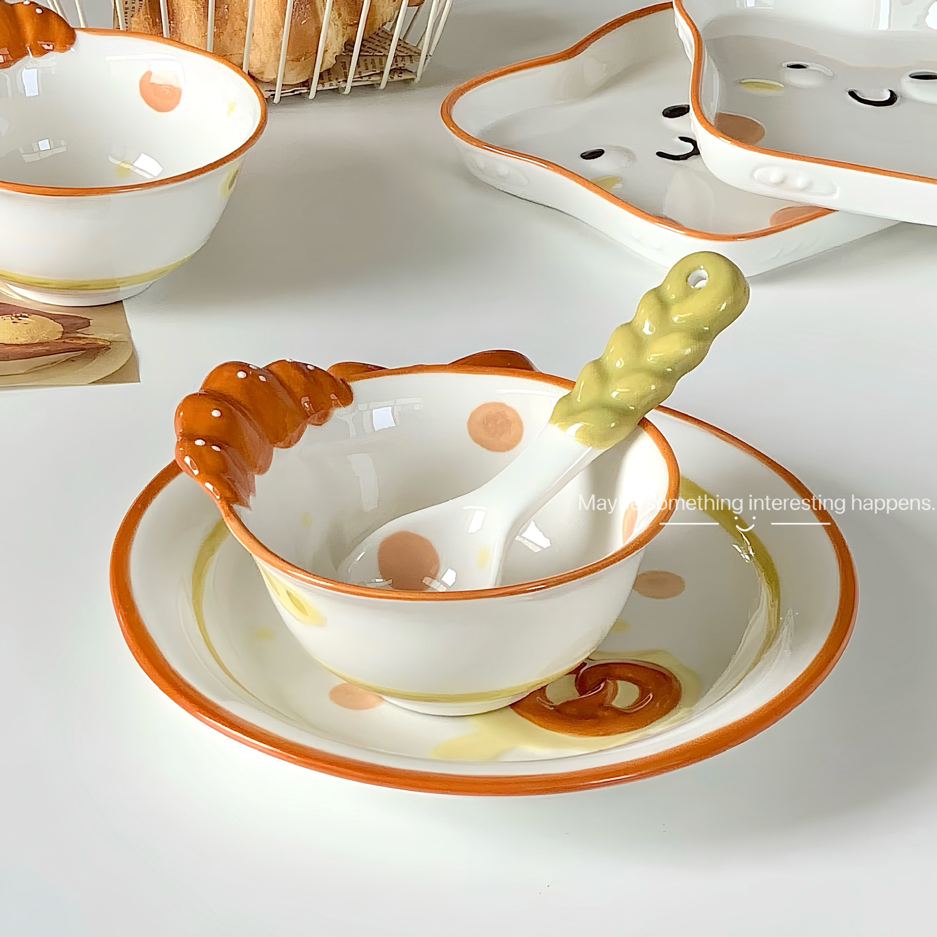 귀여운 세라믹 식기 세트 가정용 밥 그릇 양각 접시 그릇 전체 세트 만화 그릇 스푼 높은 색상 값