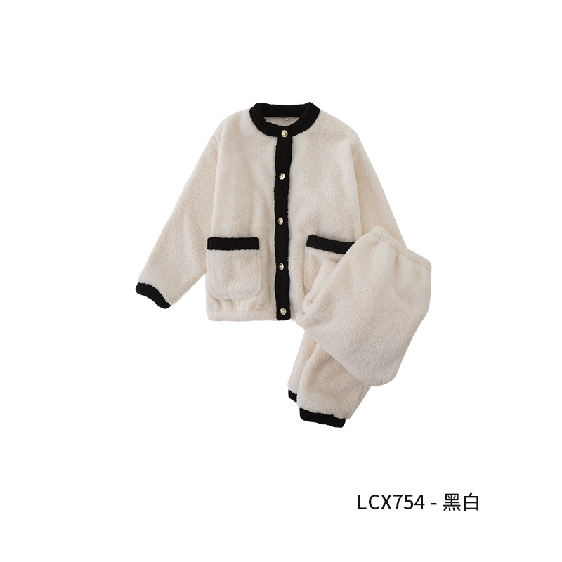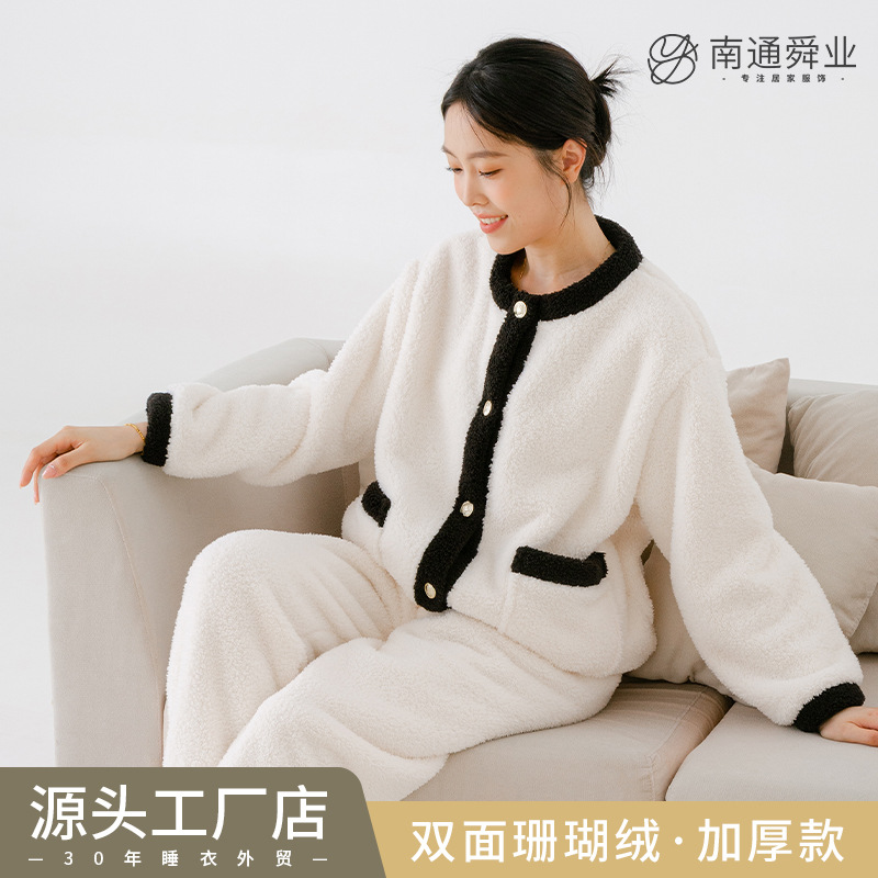 샤오 샹 스타일 산호 양털 파자마 여성 가을과 겨울 카디건 슈퍼 따뜻한 두꺼운 여성 아웃웨어 홈 의류 세트