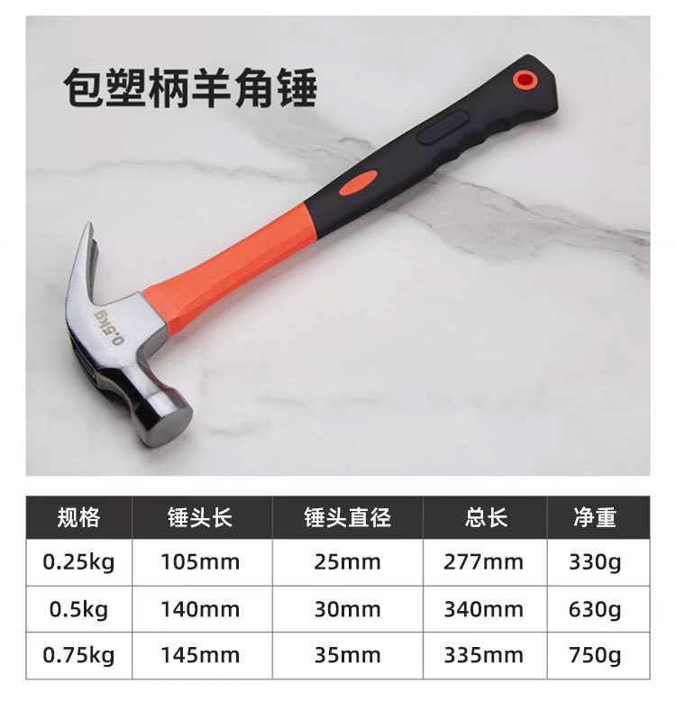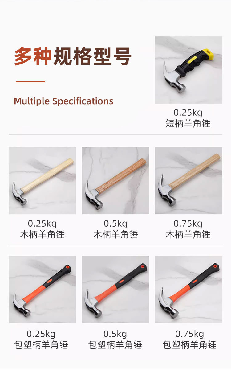 양각형 망치 일체형 소형 망치 가정용 탄소강 전기공 목공용 못망치 대량 구매 시 특가 미끄럼 방지 못 흡착 도매