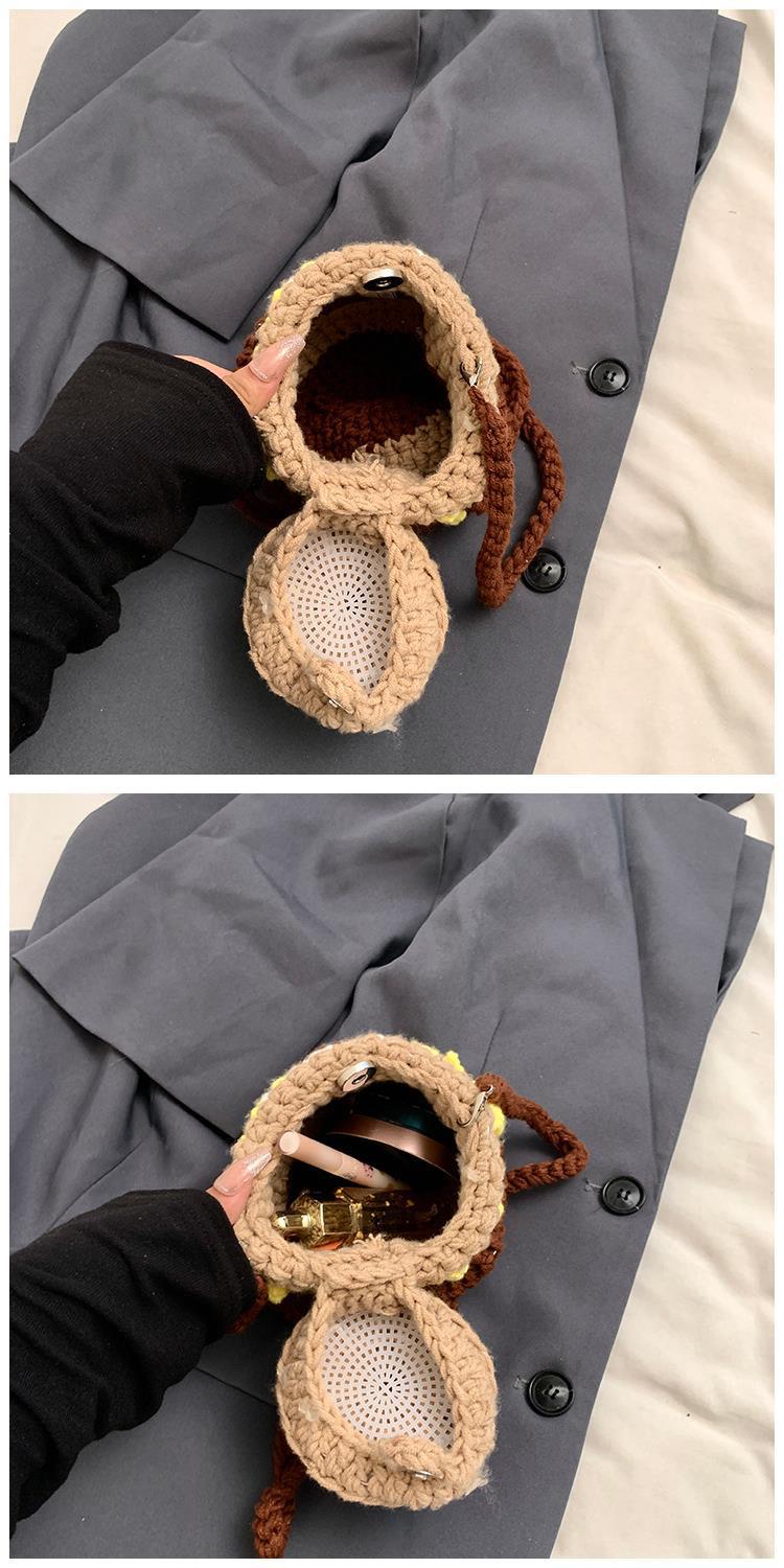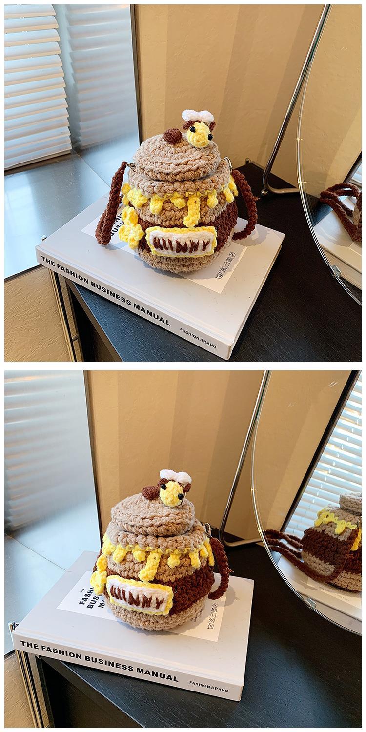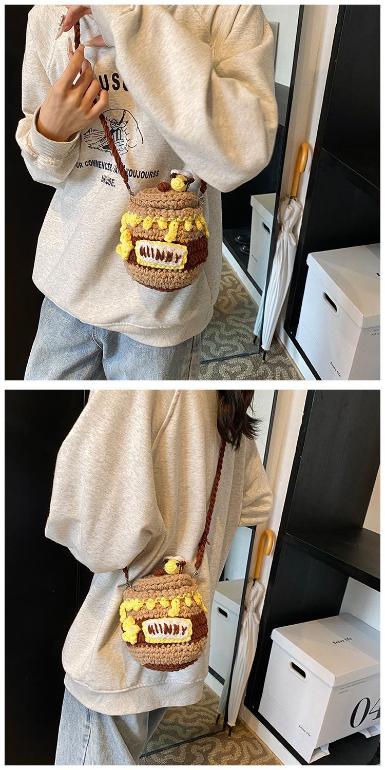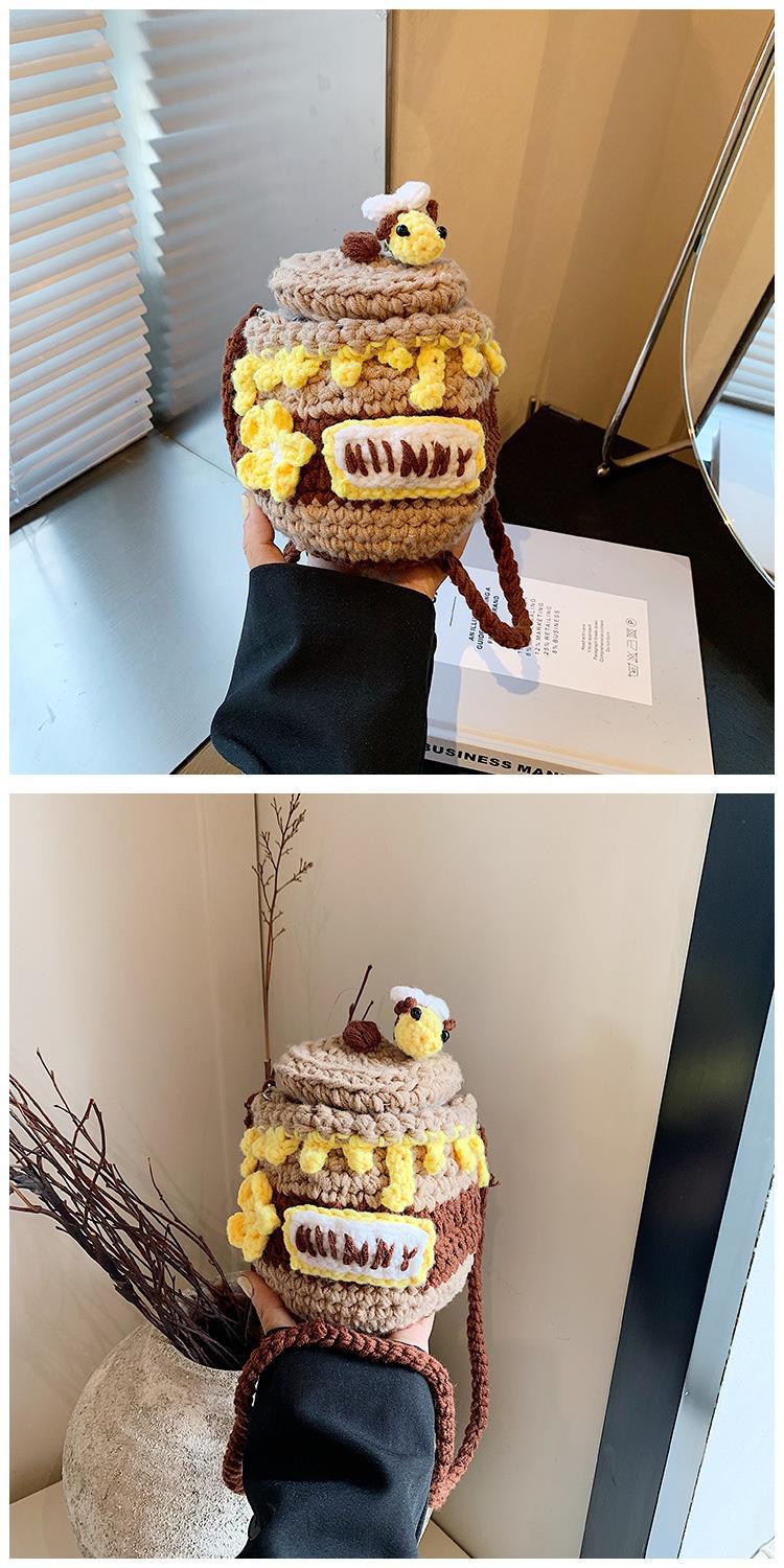 가을과 겨울 새로운 수제 크로 셰 뜨개질 꿀 냄비 양모 가방 귀여운 미니 버킷 가방 동전 지갑 크로스 바디 어린이 가방스토어 가기