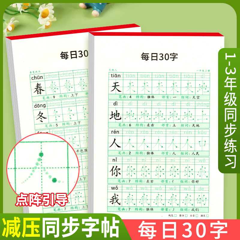 매일 30 단어 초등학생 1-3 학년 감압 동기화 카피 북 도트 매트릭스 새로운 단어 추적 빨간색 단어 연습 책스토어 가기
