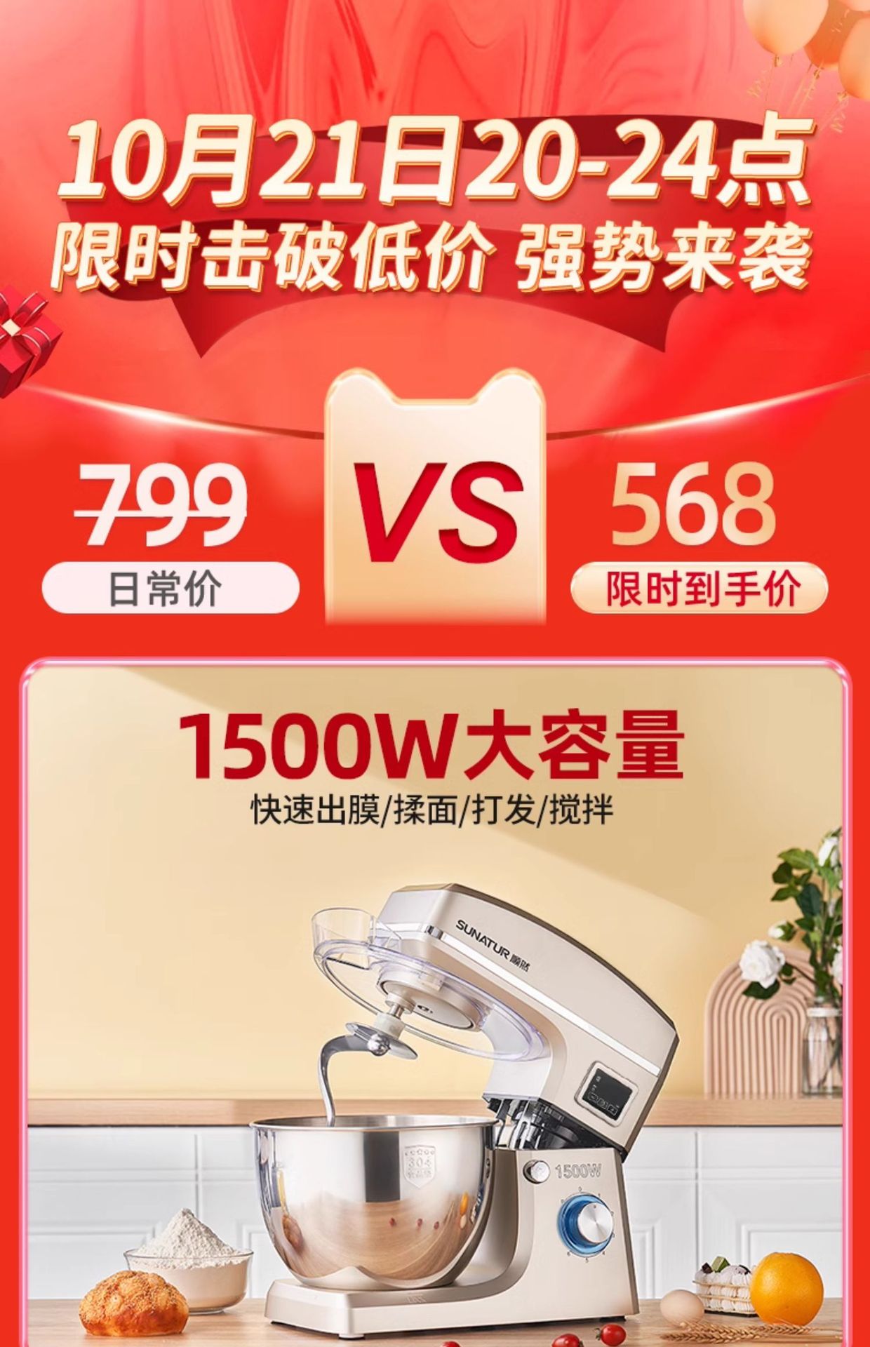 • [더블 배럴 구성] 8리터 주방 기계 1500W