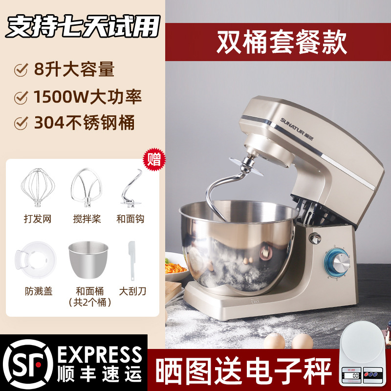 Shunran 8L 반죽 믹서 상업용 요리사 기계 가정용 작은 자동 반죽 반죽 기계 라이브 밀가루 계란 믹서
