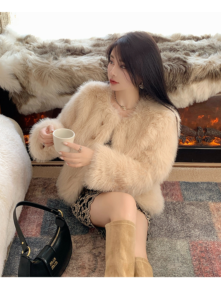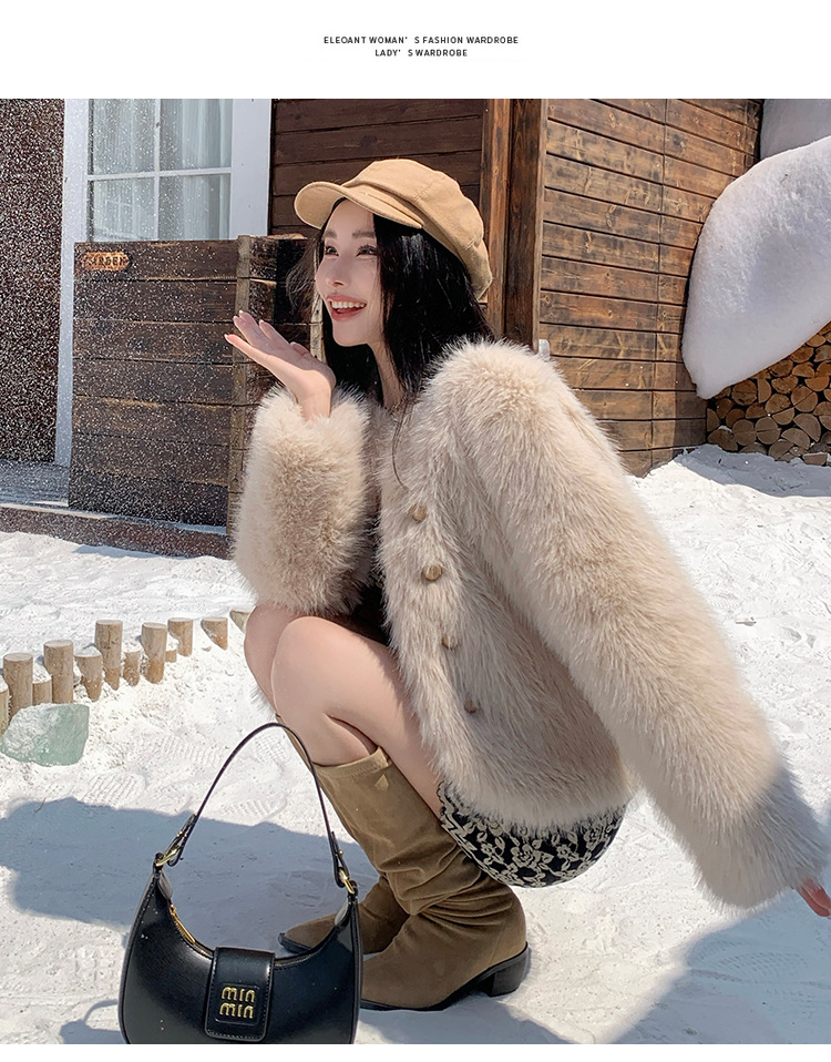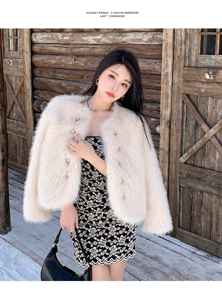 샤넬 스타일 화이트 친환경 모피 코트 여성 겨울 2024 새로운 하이 엔드 센스 모피 원피스 두꺼운 코트스토어 가기