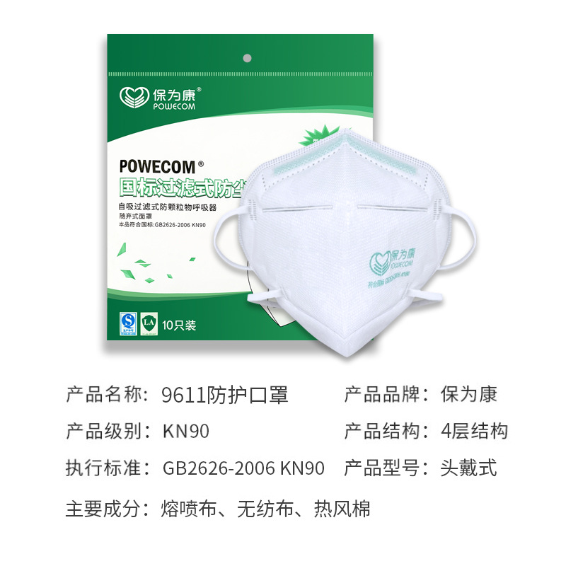 Baowei Kang 9600KN90 일회용 먼지 마스크 안티 산업 먼지 통기성 장식 세련된 노동 보호 입 및 코 마스크
