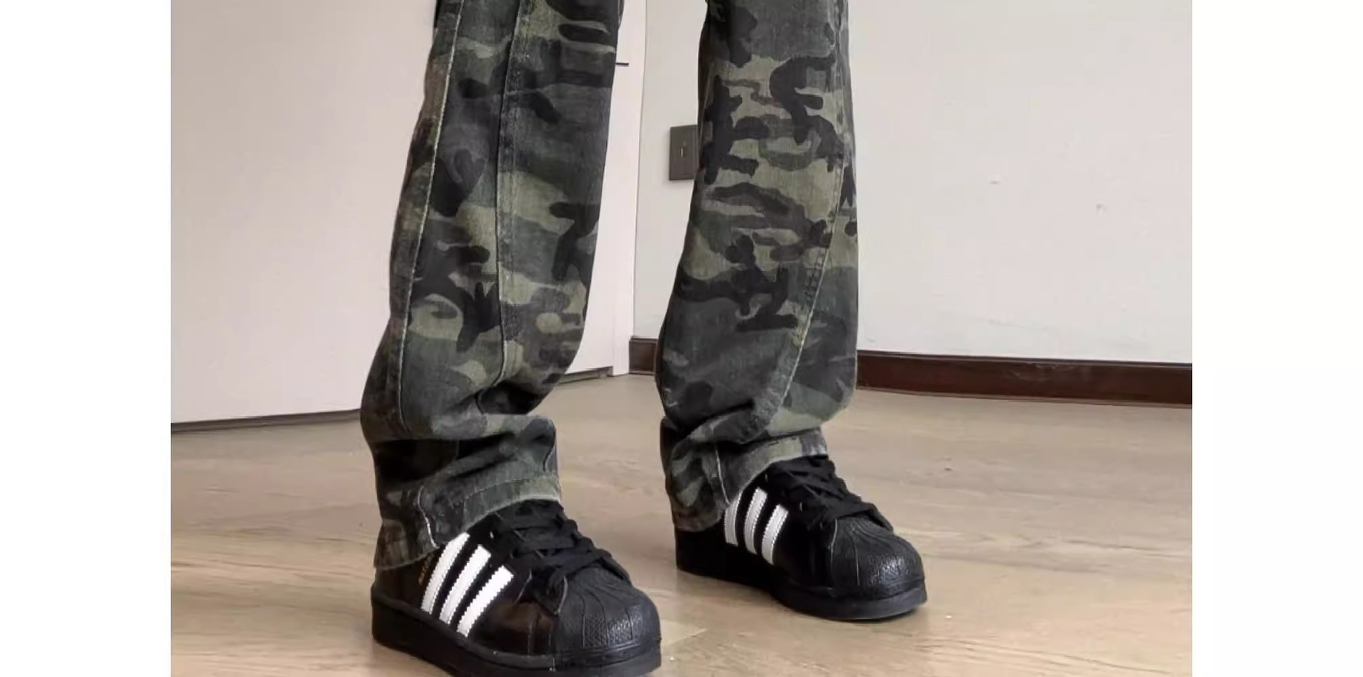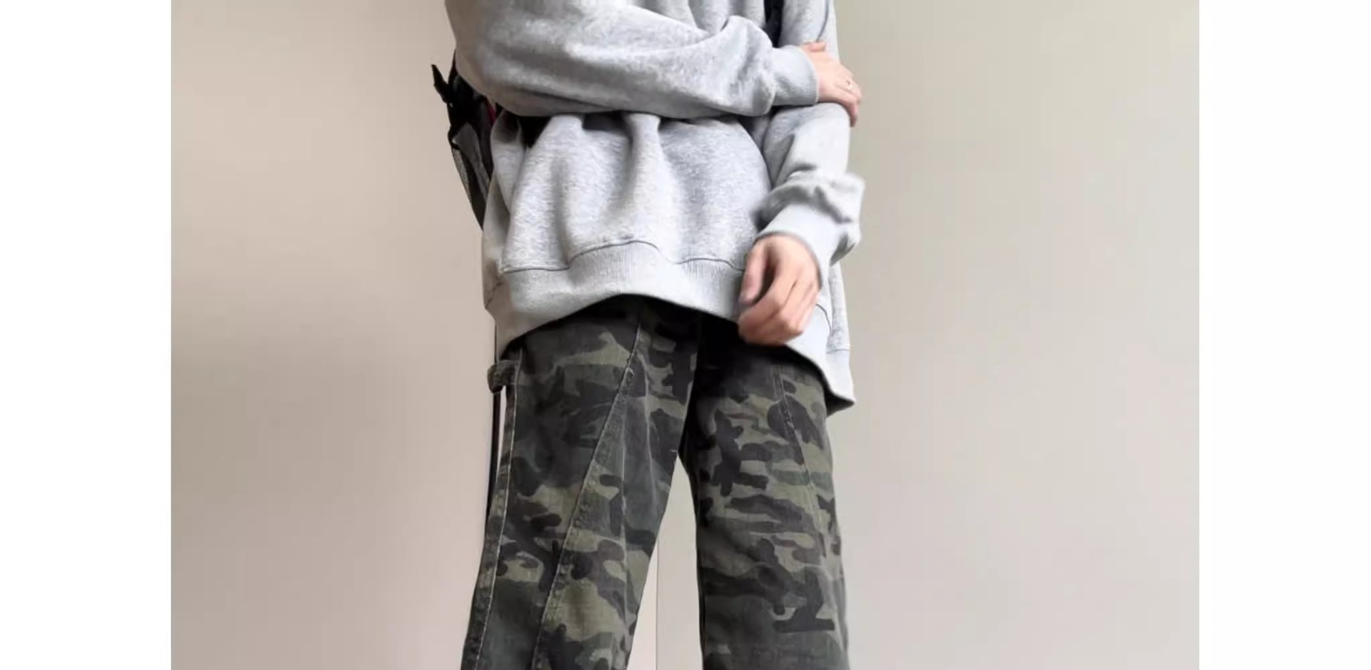 미국의 봄과 가을 남성과 여성의 위장 바지 작업복 청바지 하이 스트리트 로깅 바지 느슨한 스트레이트 와이드 다리 바지스토어 가기