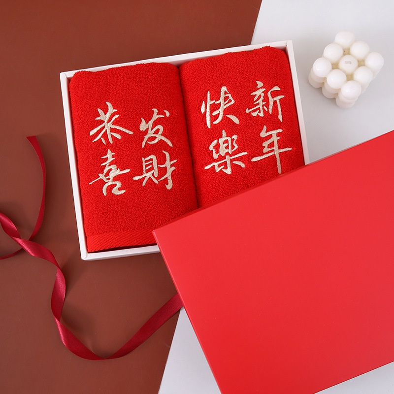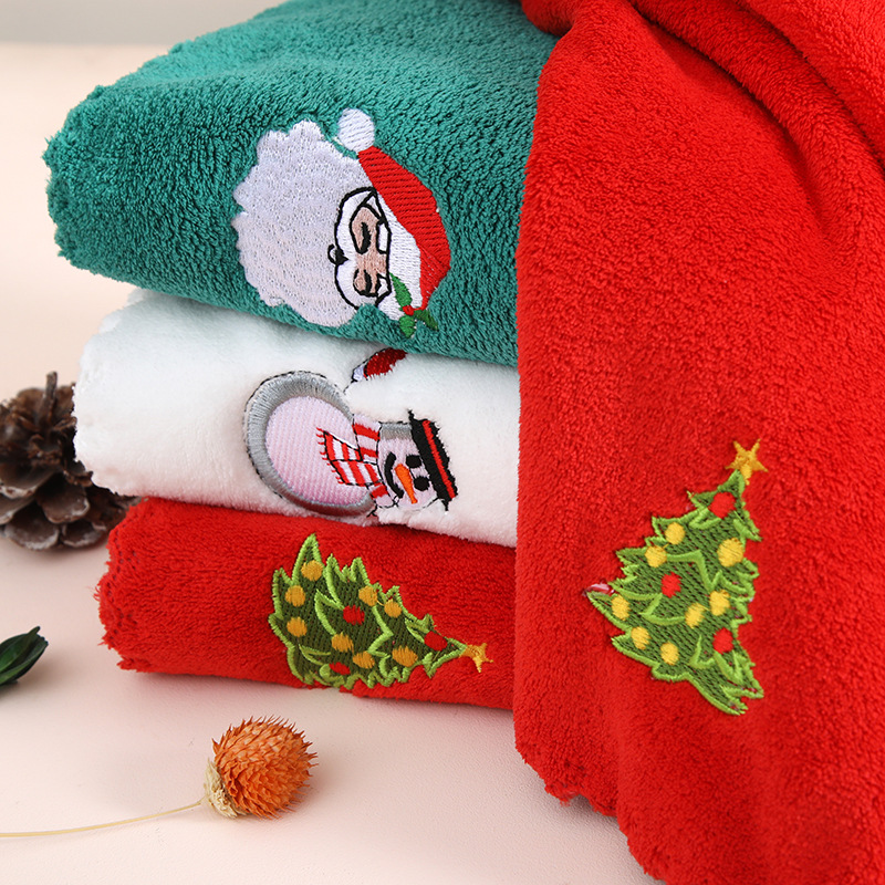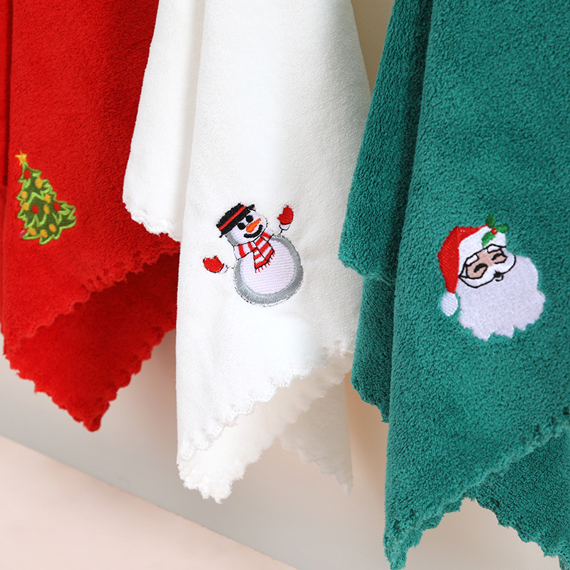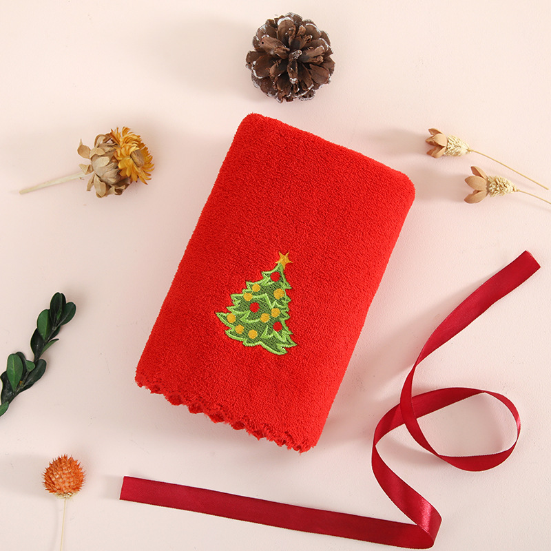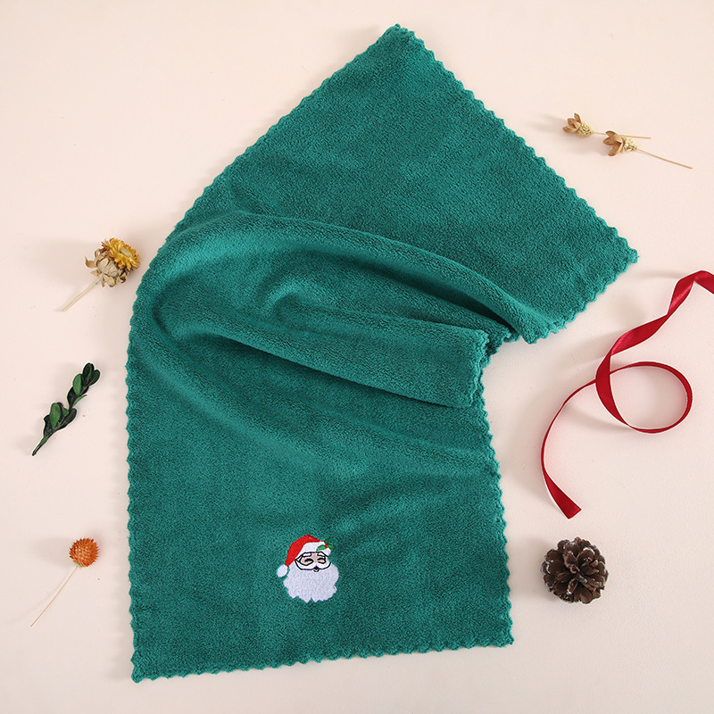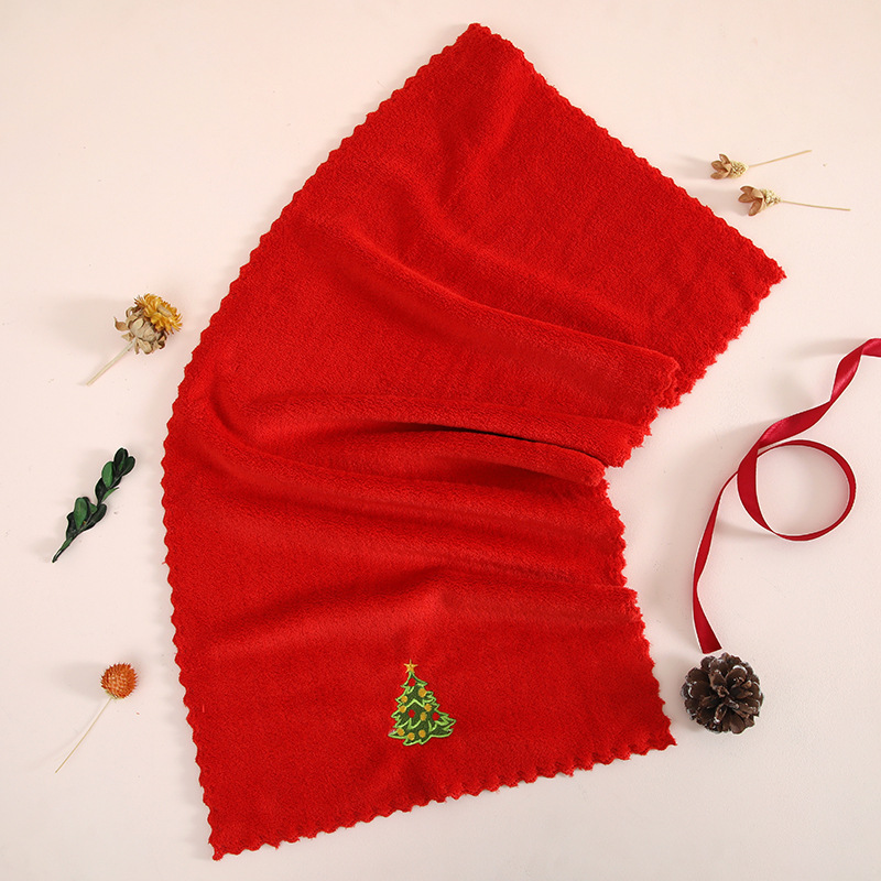 새해 수건 산호 양털 산타 클로스 타월 레드 축제 손 선물 얼굴 타월 박스 백 자수