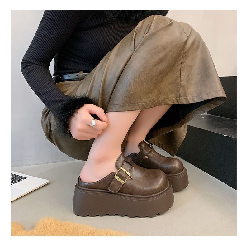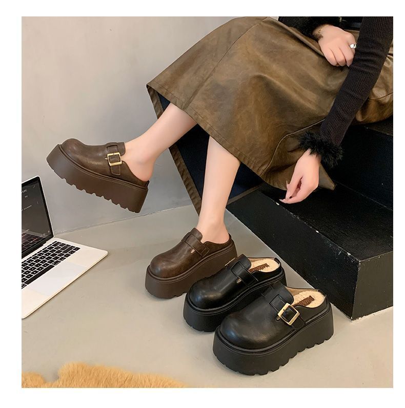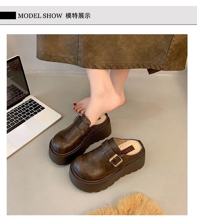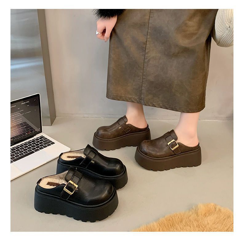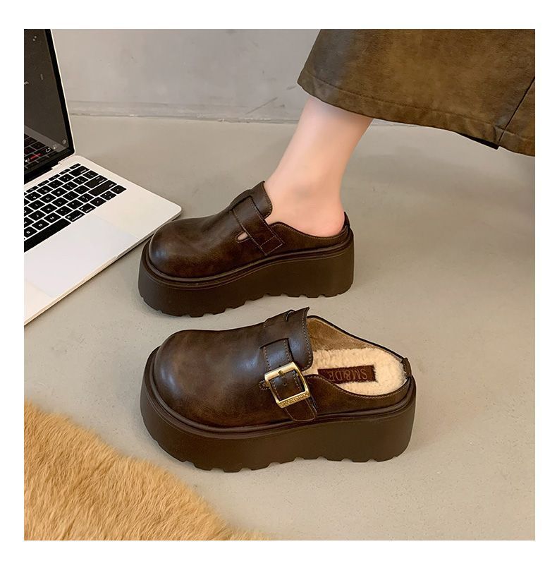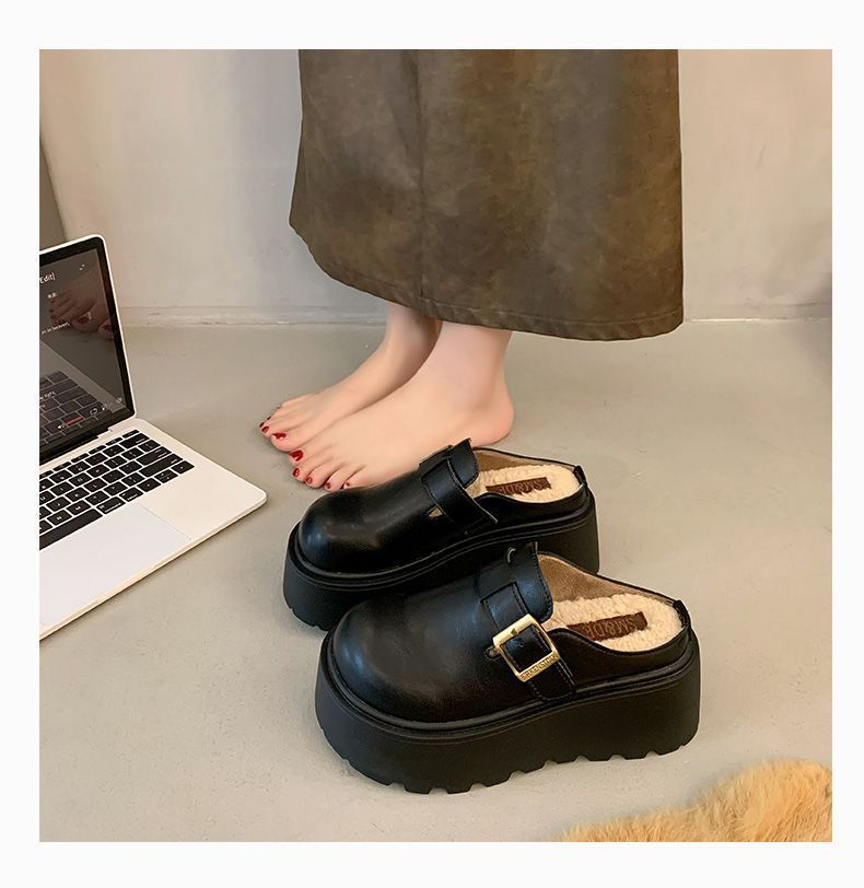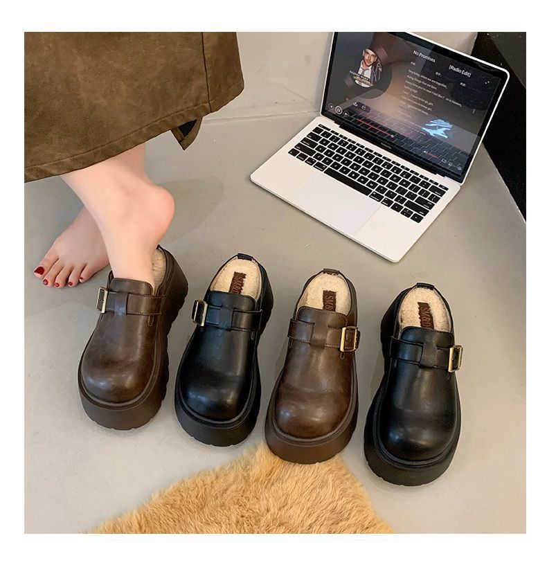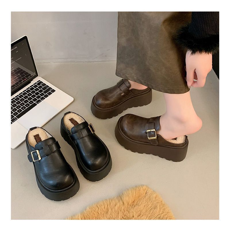 두꺼운 밑창 기모 Birkenstocks 신발 여성 가을 및 겨울 새로운 도착 Baotou 하프 드래그 마오 슬리퍼 여성용 강화 아웃웨어 Birkenstocks 면화 신발스토어 가기