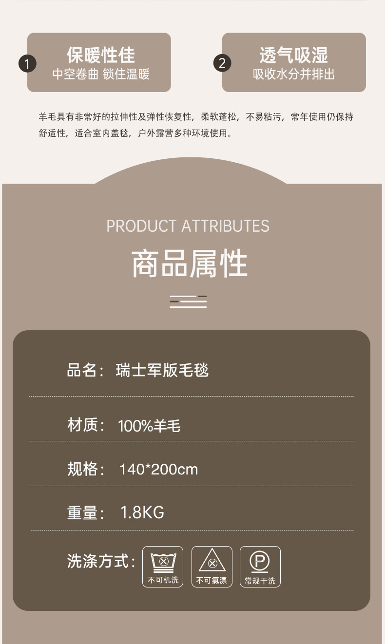 스위스 군용 담요 100% 울 담요 야외 캠핑 부드럽고 따뜻한 담요 낮잠 담요 소파 담요