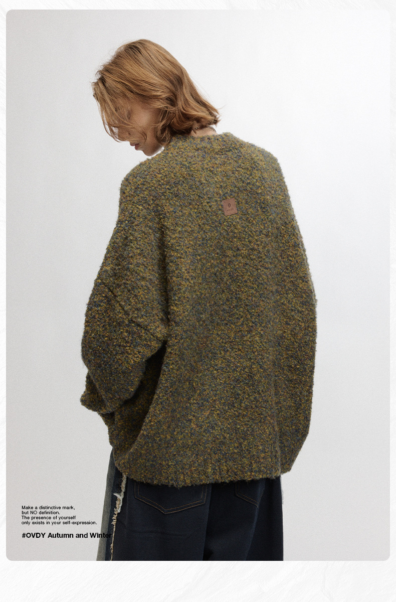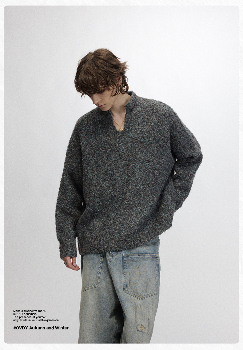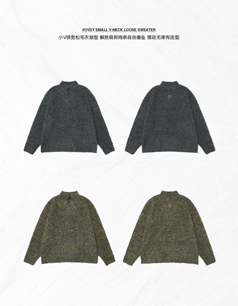 # OVDY 가을 겨울 니트 스웨터, 레이지 스타일 신상 단색 심플 아메리칸 스타일 작은 V넥 루즈 니트스토어 가기
