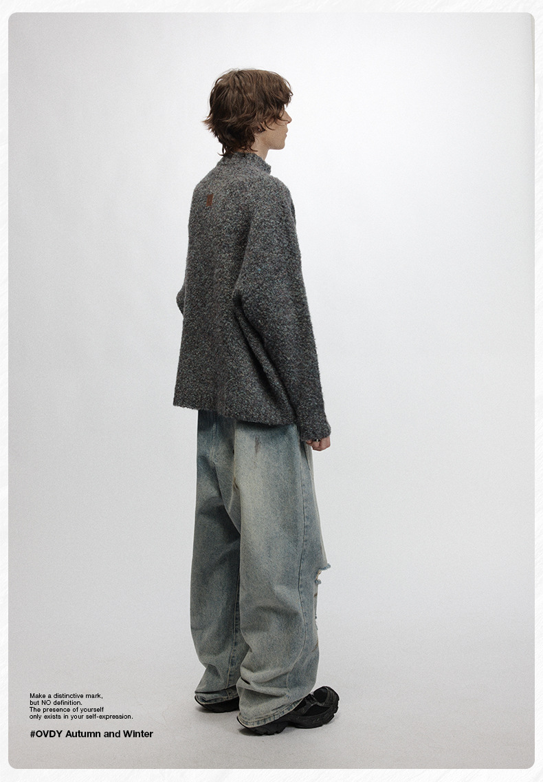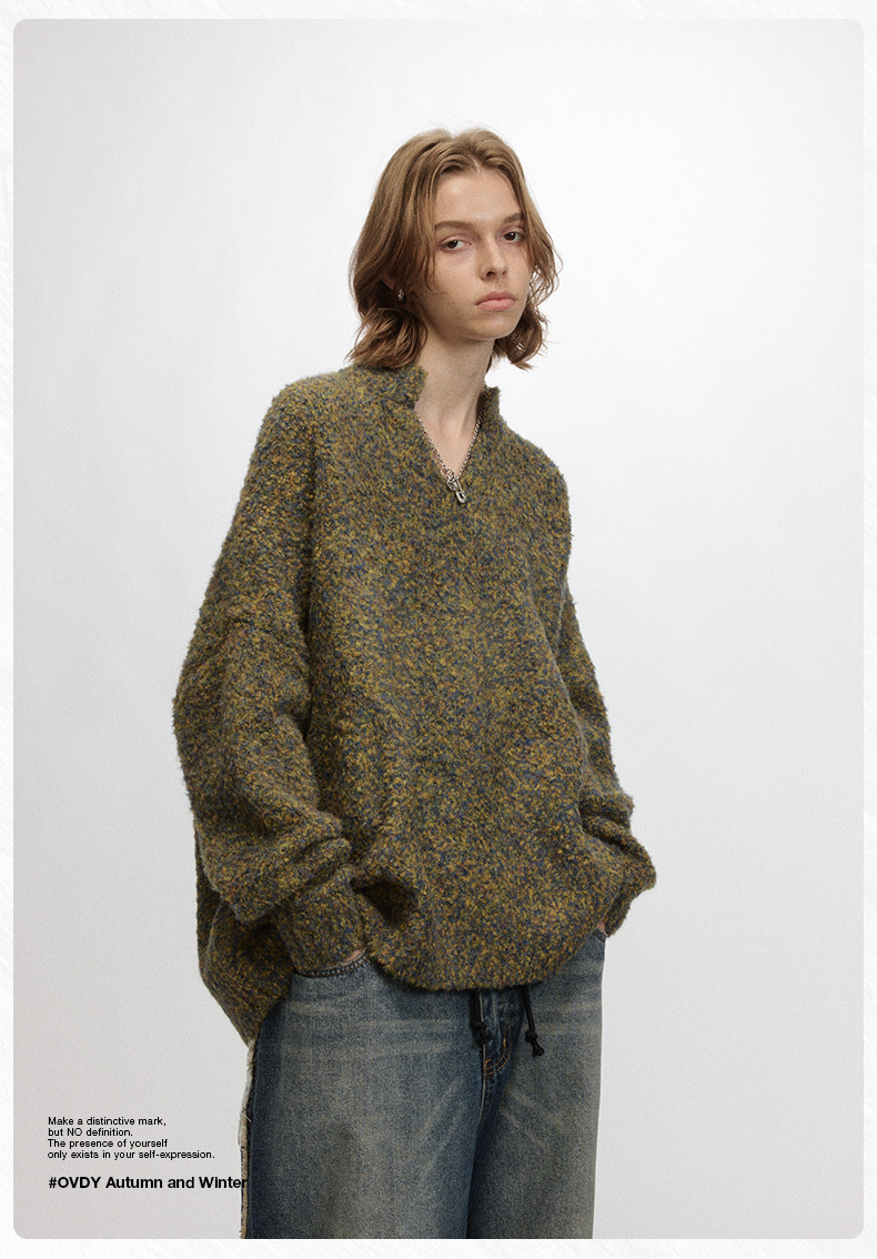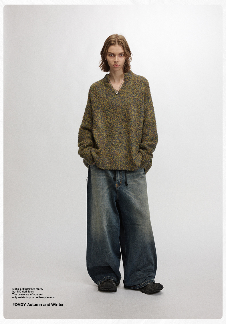 # OVDY 가을 겨울 니트 스웨터, 레이지 스타일 신상 단색 심플 아메리칸 스타일 작은 V넥 루즈 니트