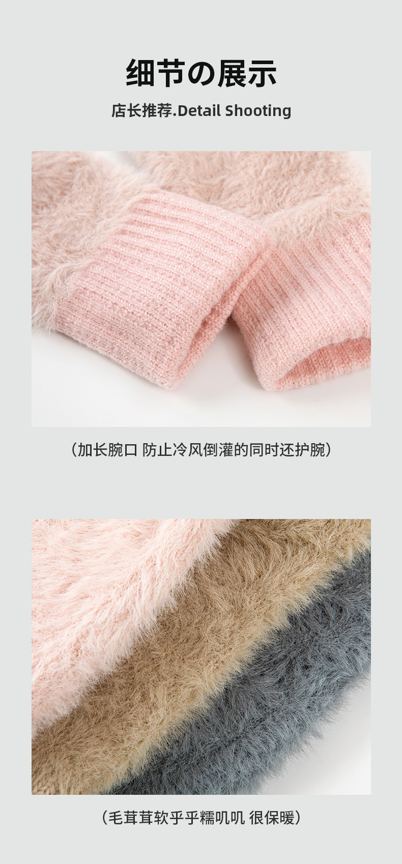 • 플러시 반손가락 장갑 핑크