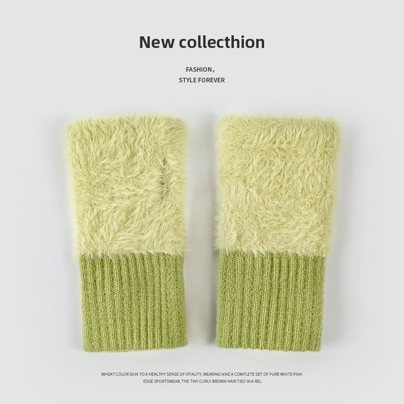 • 플러시 반손가락 장갑 말차 그린