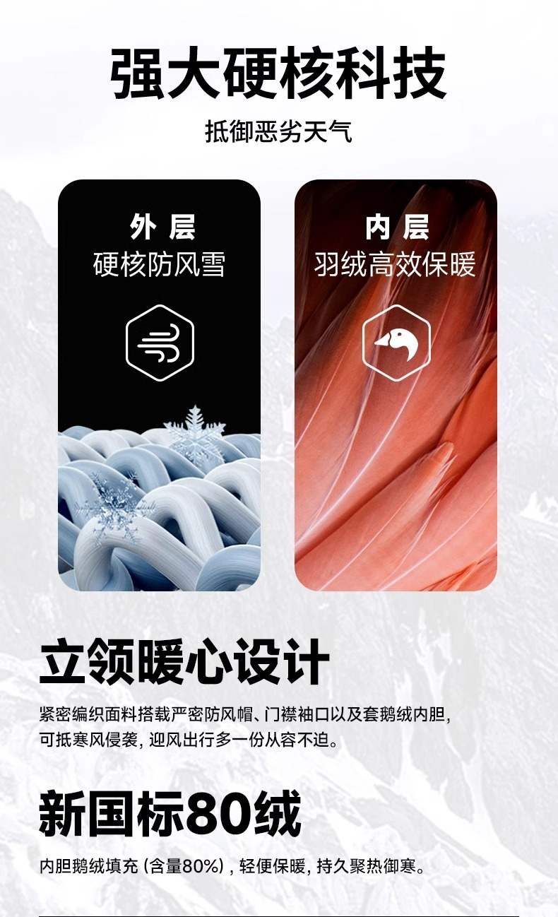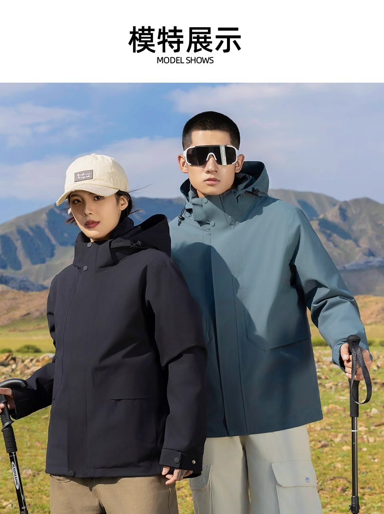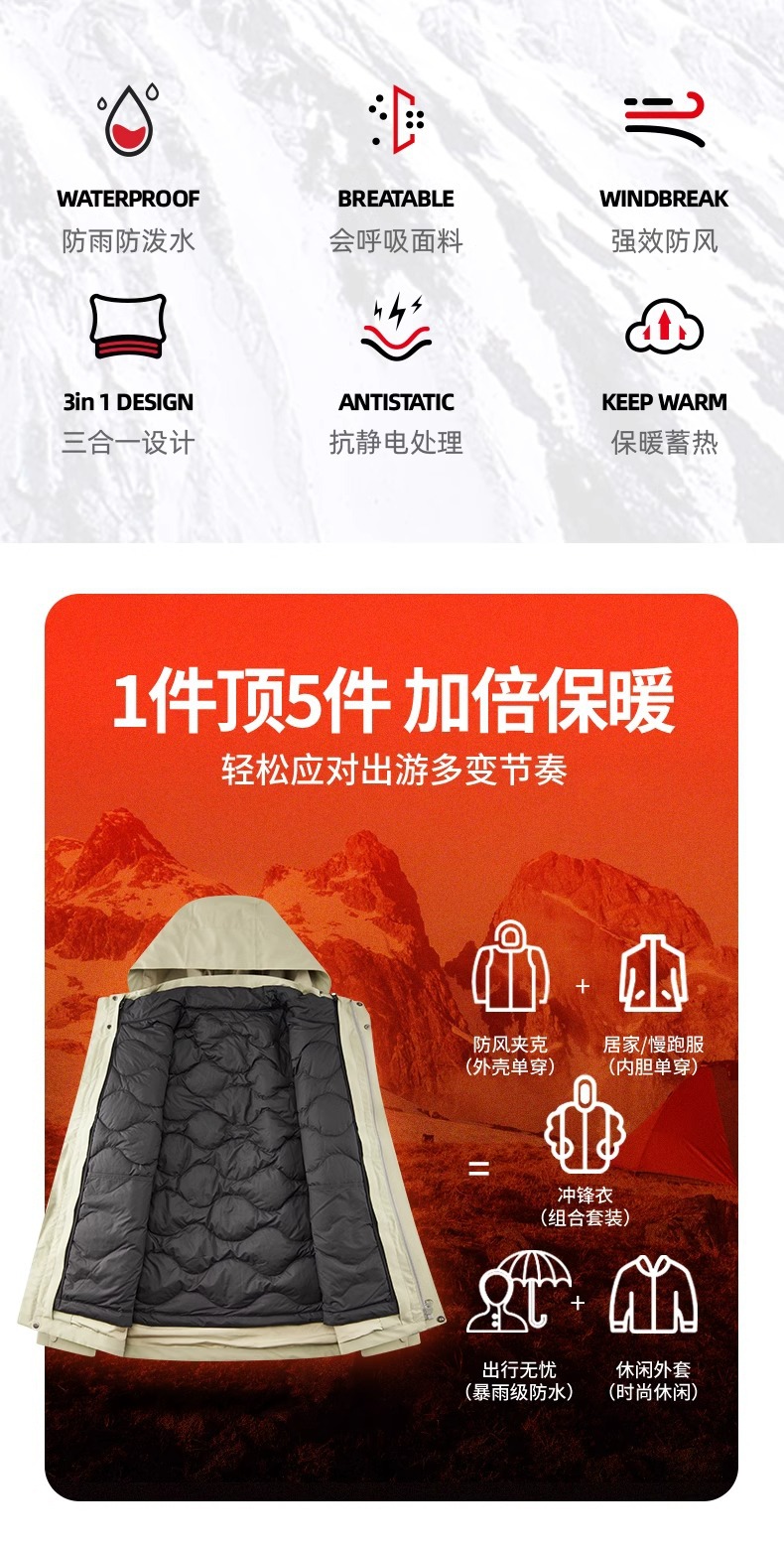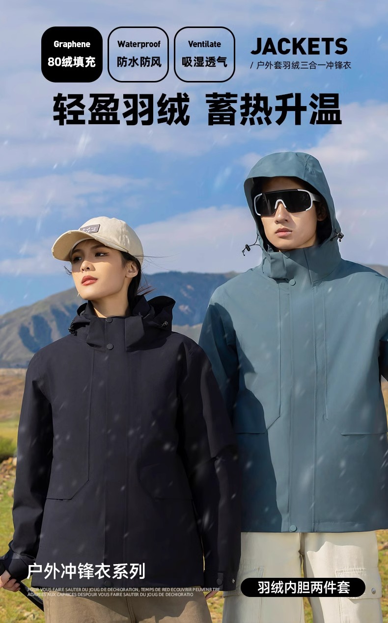 커플의 3 대 1 이동식 방풍 따뜻한 재킷 코트 야외 거위 다운 라이너 발수 소박한 재킷