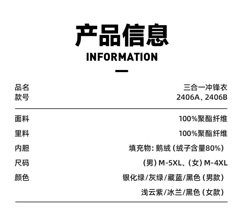 커플의 3 대 1 이동식 방풍 따뜻한 재킷 코트 야외 거위 다운 라이너 발수 소박한 재킷스토어 가기