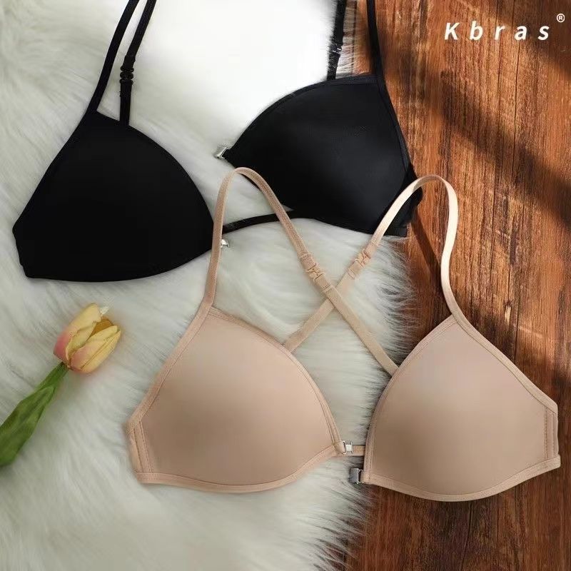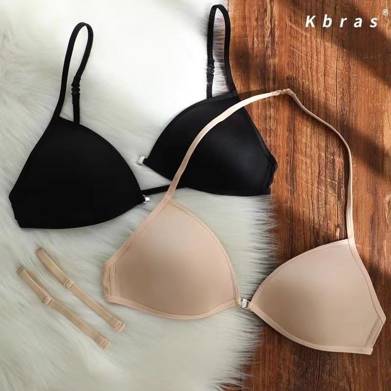 프랑스 스타일 트라이앵글 컵 속옷 여성의 얇은 어깨 끈 아름다운 등 목 전면 버튼 업 브래지어 얇은 비 마킹 브래지어 여름