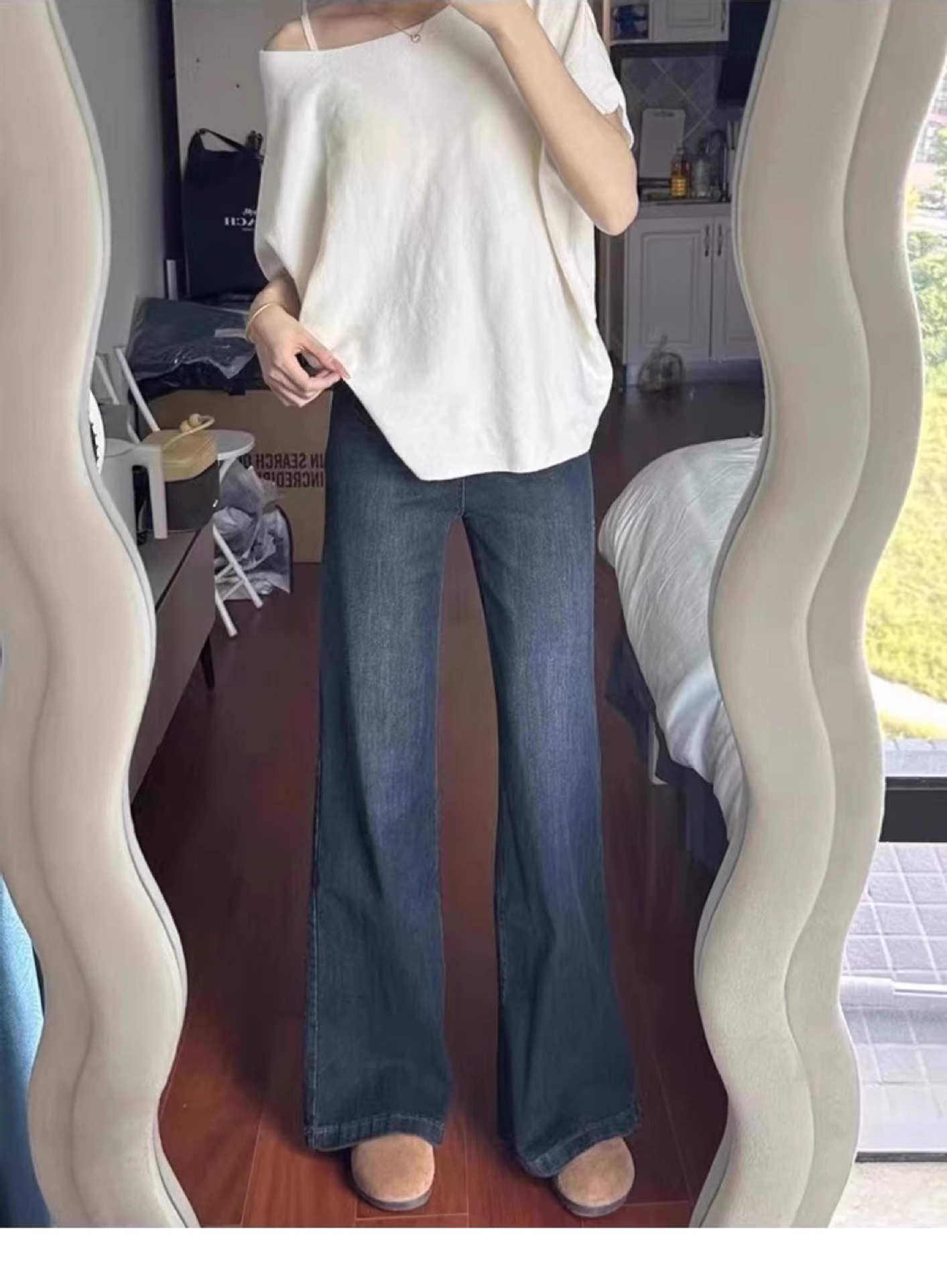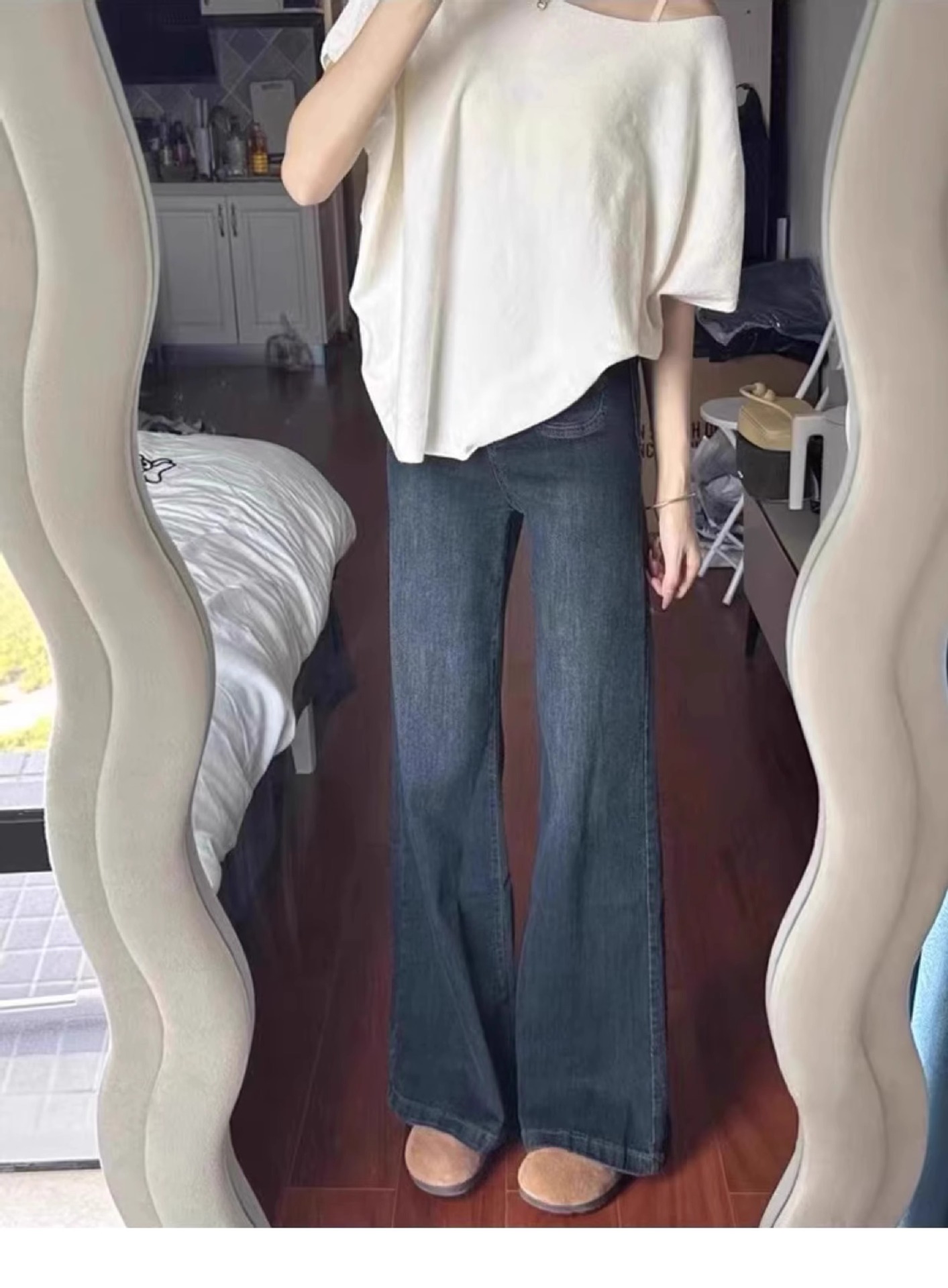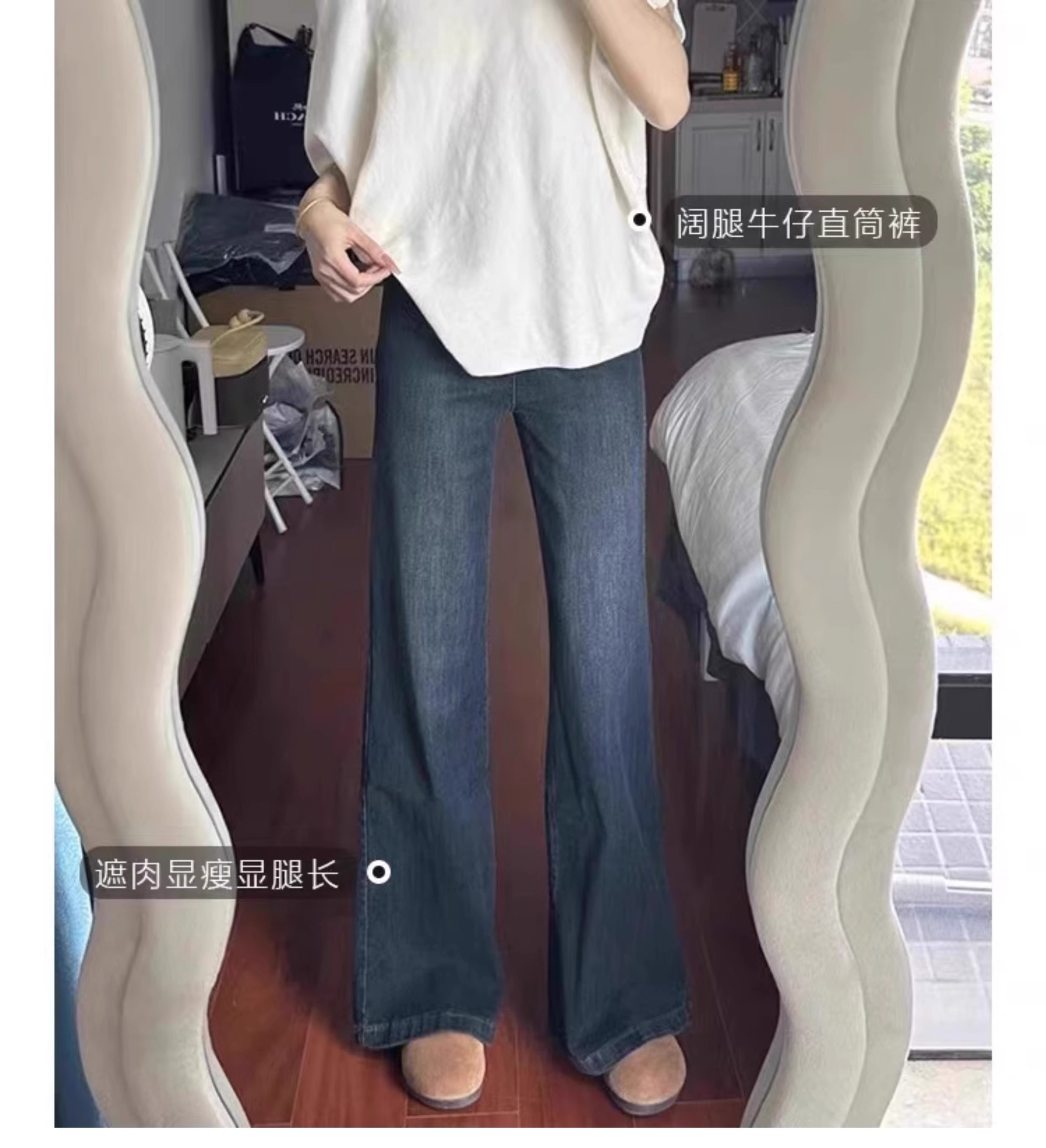 빈티지 스트레이트-다리 청바지 여성의 높은 허리 플러스 사이즈 가을과 겨울 기모 통통녀 느슨한 슬리밍 배 모양 넓은 다리 바지스토어 가기