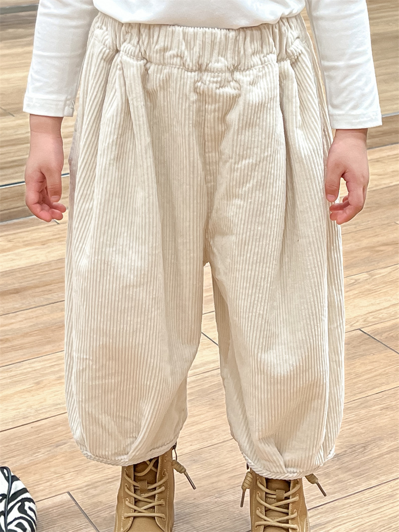 • 베이지 코듀로이 밑단 와이드 팬츠