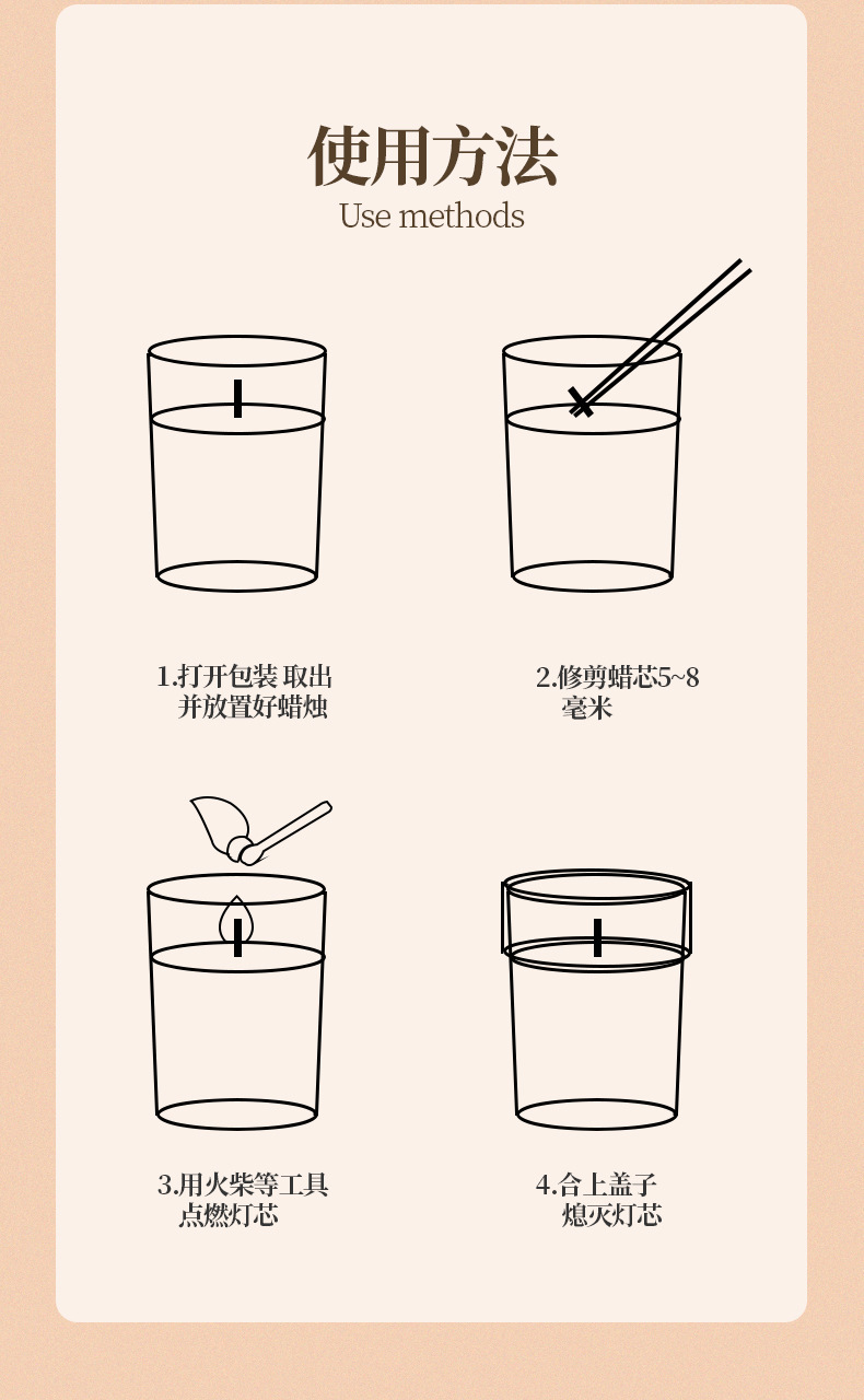 【产品特点】:防火防风,可持续燃烧照明并持续留香 减少异味