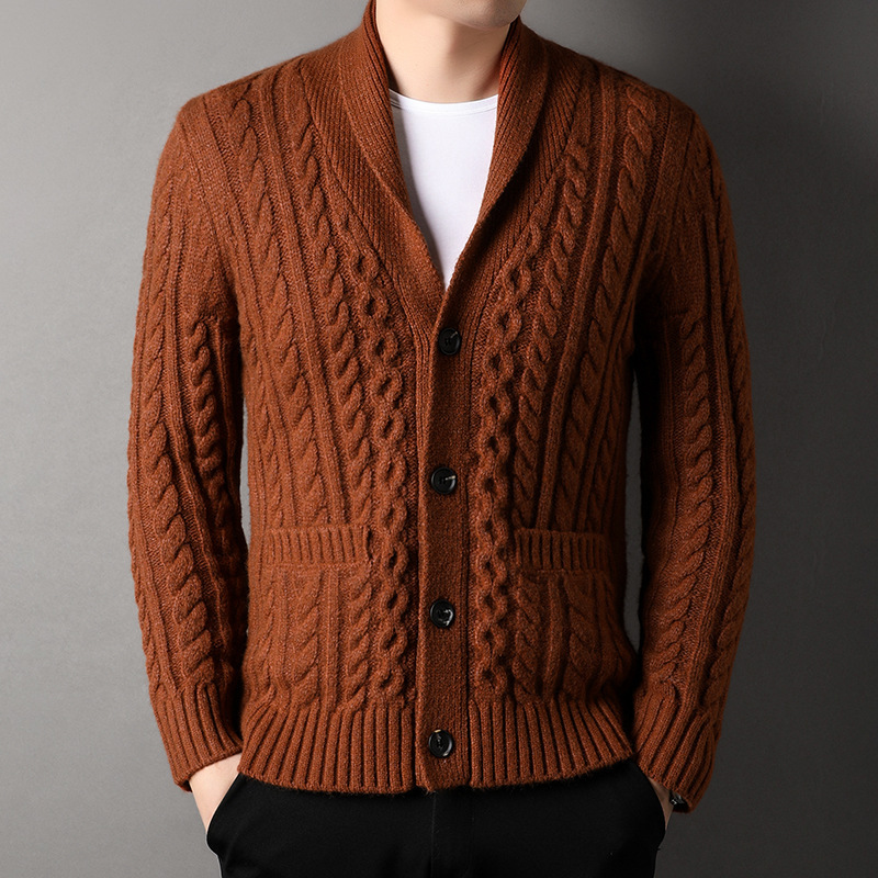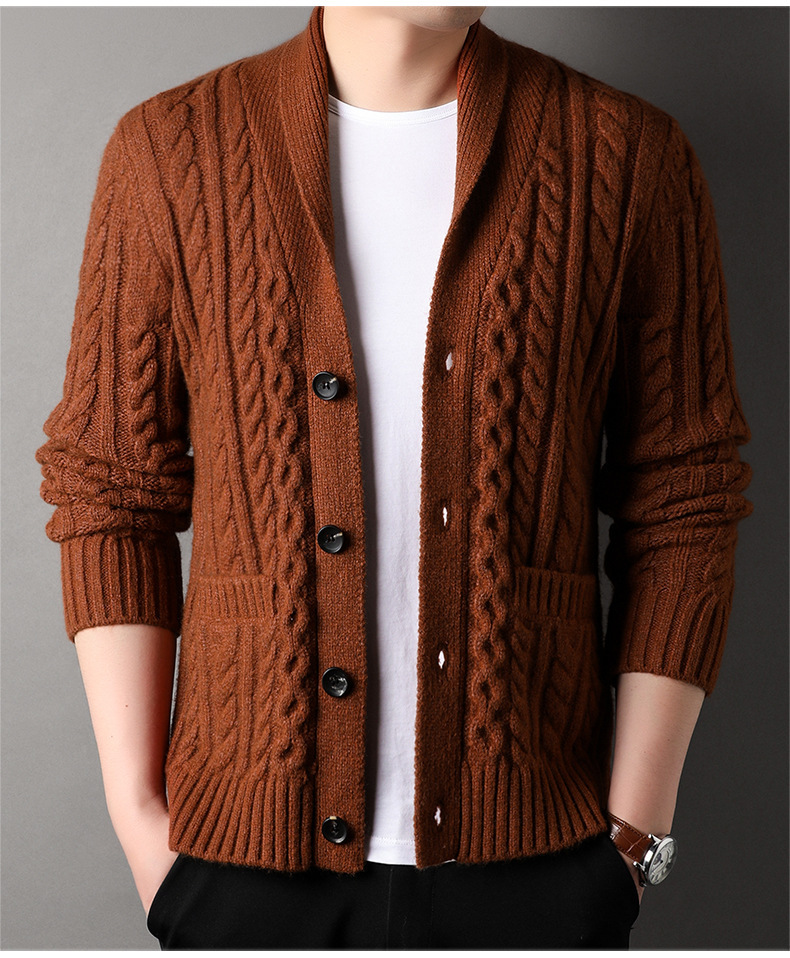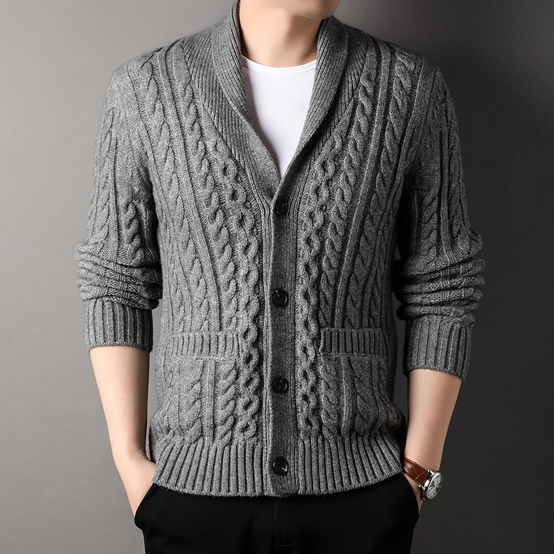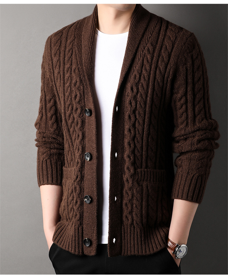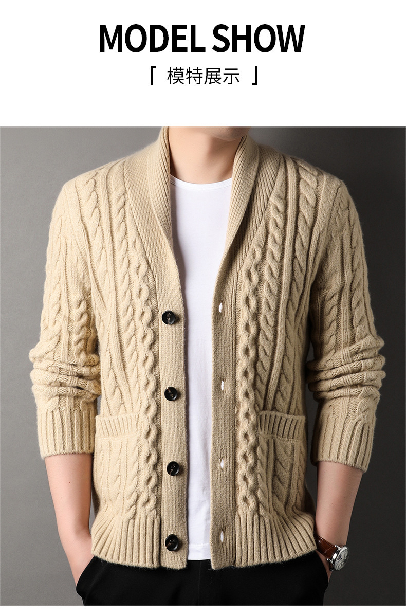 국경 간 남자 같은 스타일 중년 스웨터 카디건 봄과 가을 아우터 착용 트위스트 니트 자켓 남자 두꺼운 남자 탑스토어 가기