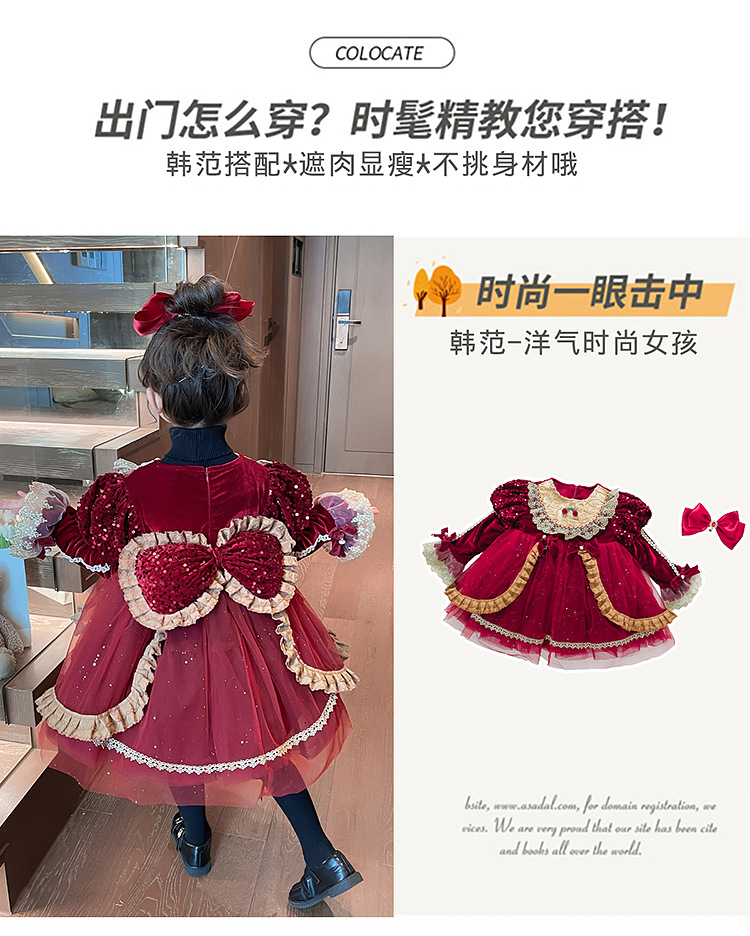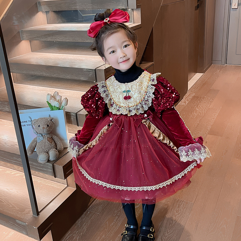 소녀 공주 원피스 2024 가을과 겨울 새 크리스마스 새해 원피스 어린이 로리타 생일 투투 원피스스토어 가기