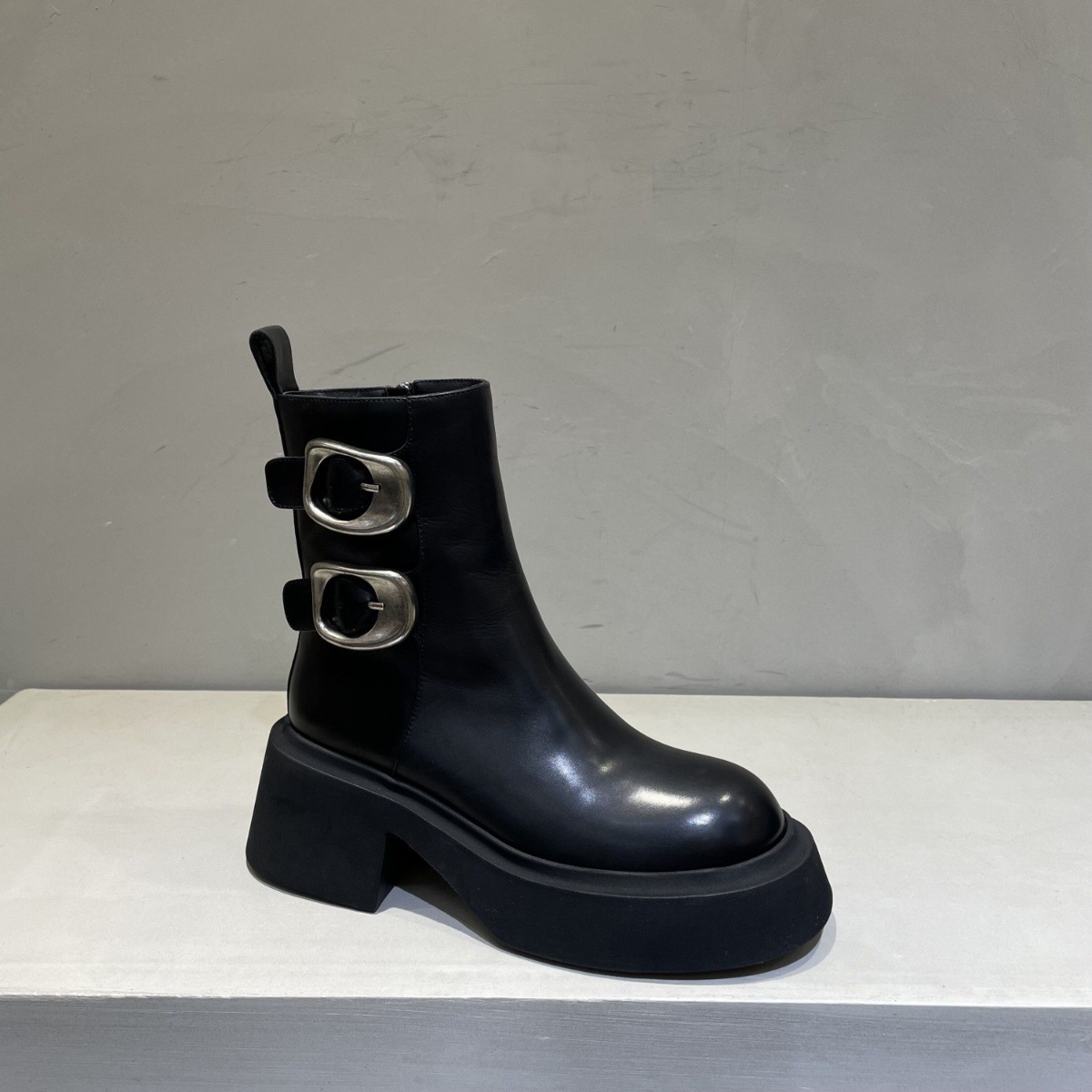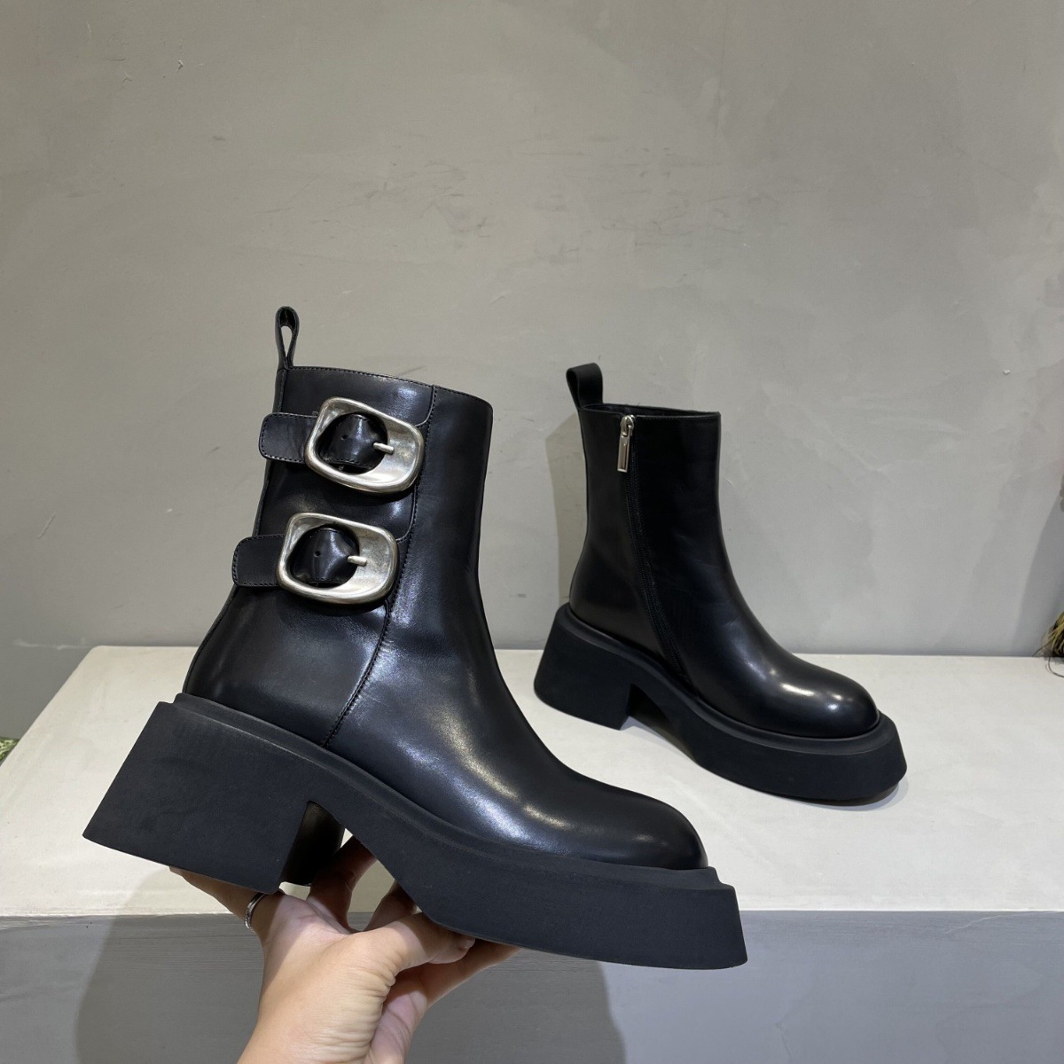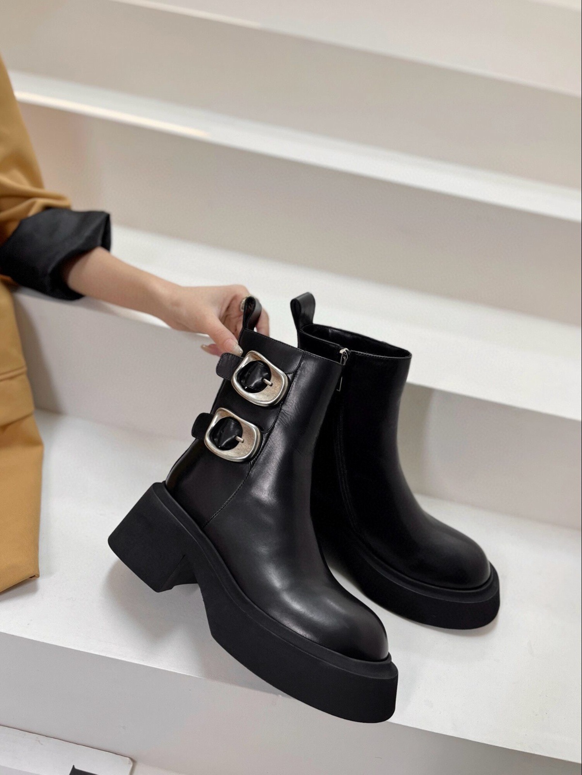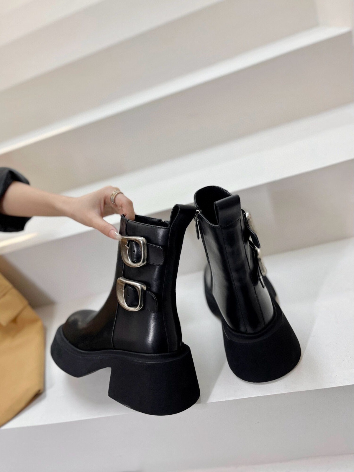 유럽 역 2024 가을과 겨울 새로운 두꺼운 밑창 기모 따뜻한 부츠 고급 느낌 벨트 버클 마틴 부츠 여성스토어 가기